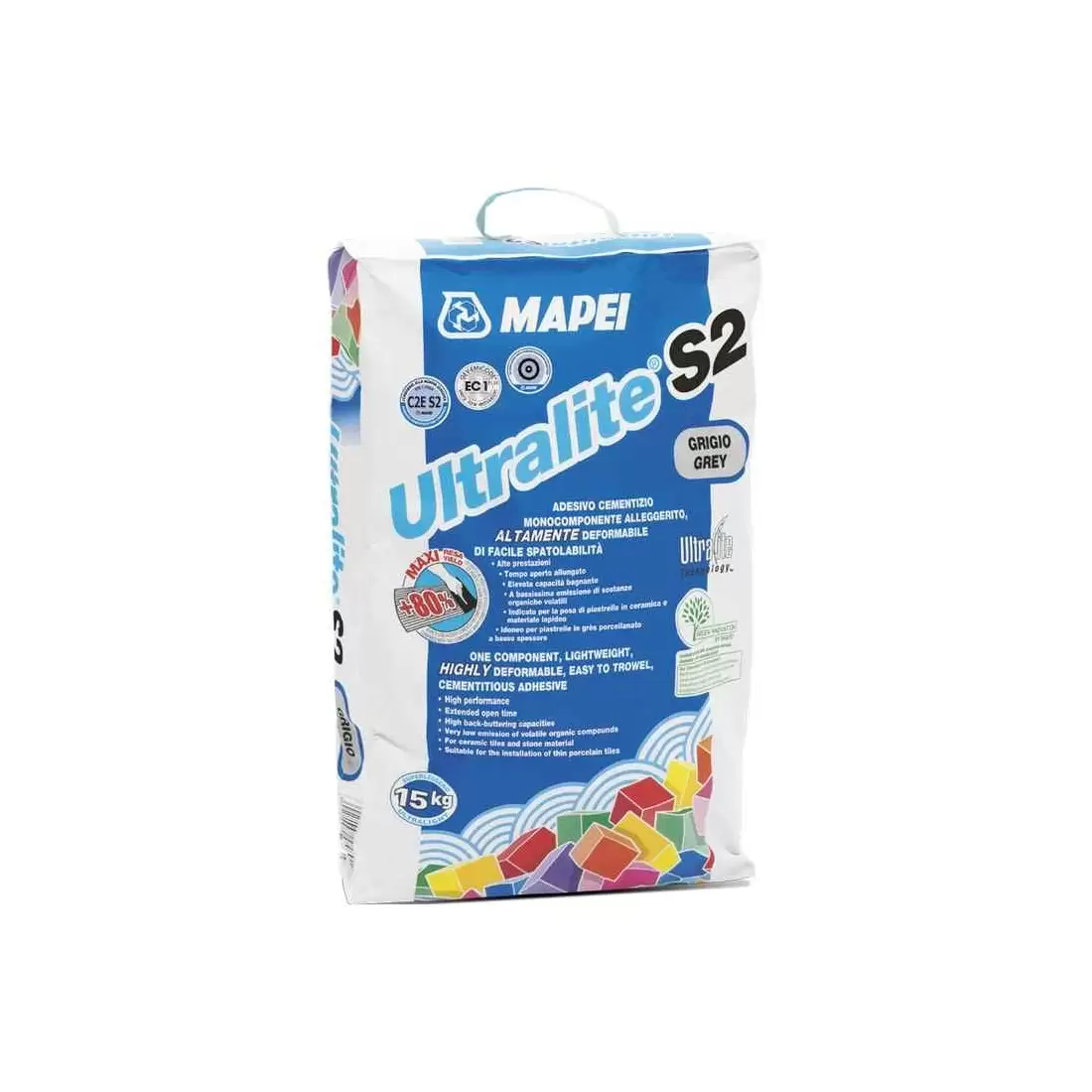 Ultralite S2 di Mapei è un adesivo cementizio particolarmente indicato per l’incollaggio sul rovescio delle piastrelle in quanto permette di evitare la doppia spalmatura per la posa di grandi formati in ambienti interni. L’elevata capacità bagnante del retro delle piastrelle, inoltre, rende questo adesivo particolarmente indicato per la posa di piastrelle di grès porcellanato a basso spessore.