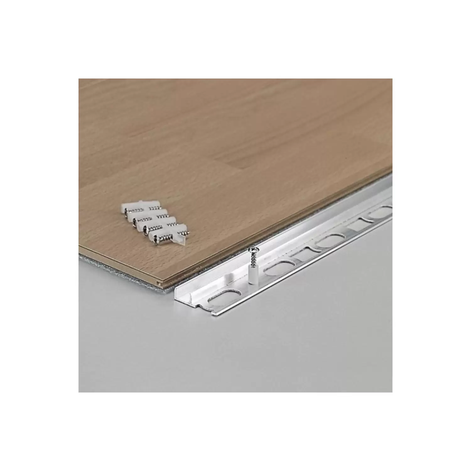Idoneo per pavimenti incollati con spessore da 8 a 10,5 mm, viene fissato al profilo di base dopo l’inserimento dell’apposita clip TU/6 e uno o due supporti di regolazione, in funzione dello spessore del pavimento.