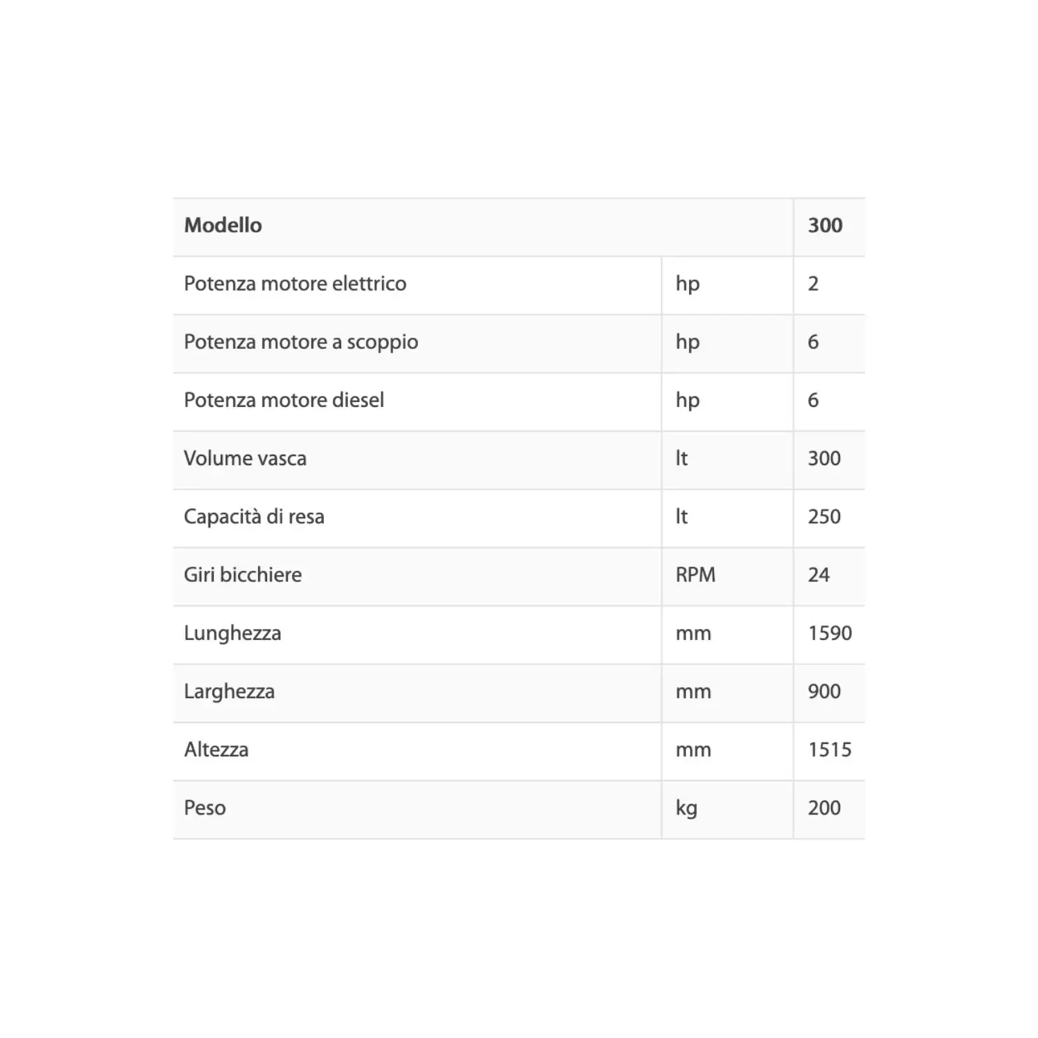 - Volume vasca lt 300