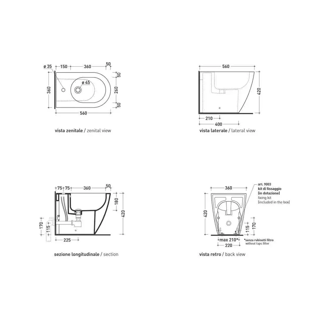- Lunghezza/Profondità: 56 cm