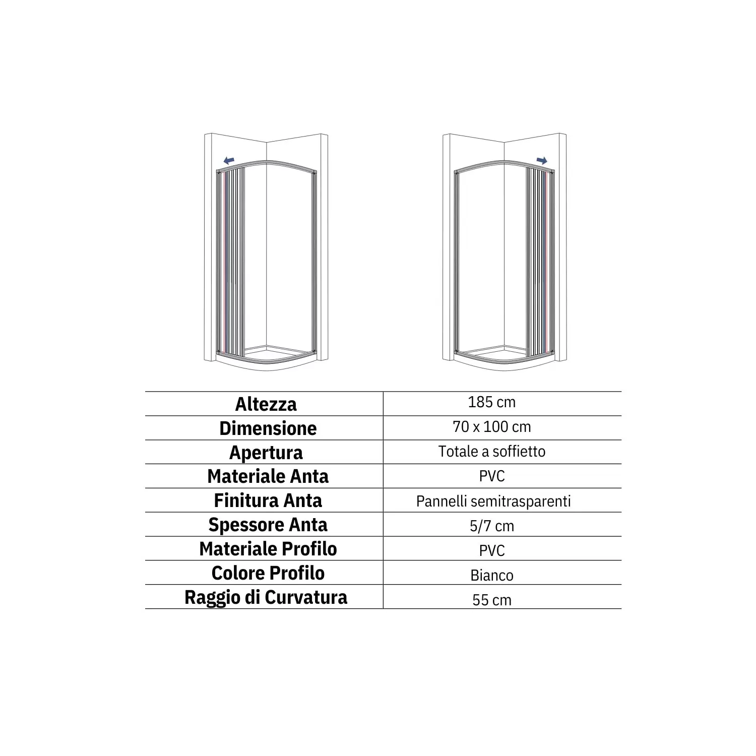 Box doccia semicircolare asimmetrico a 2 lati con apertura laterale in PVC