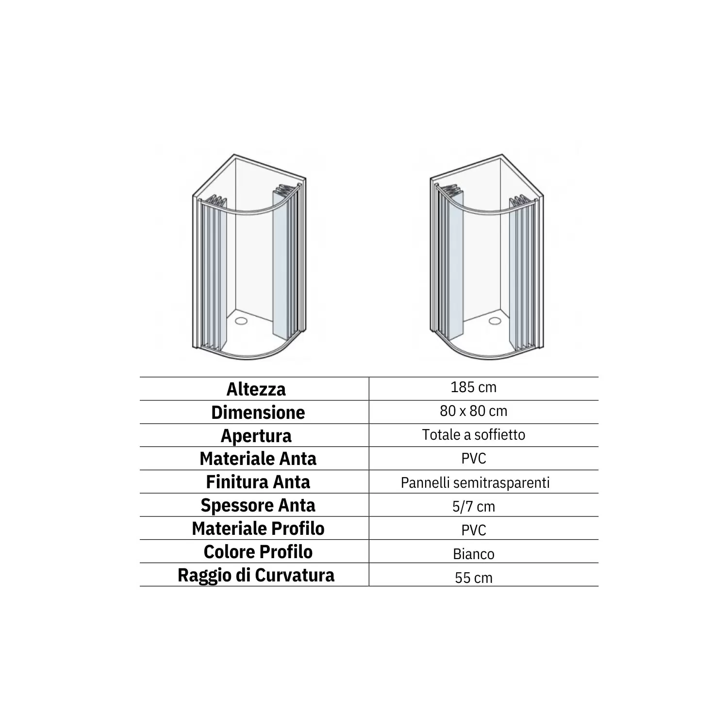 Box doccia semicircolare a 2 lati con apertura totale in PVC