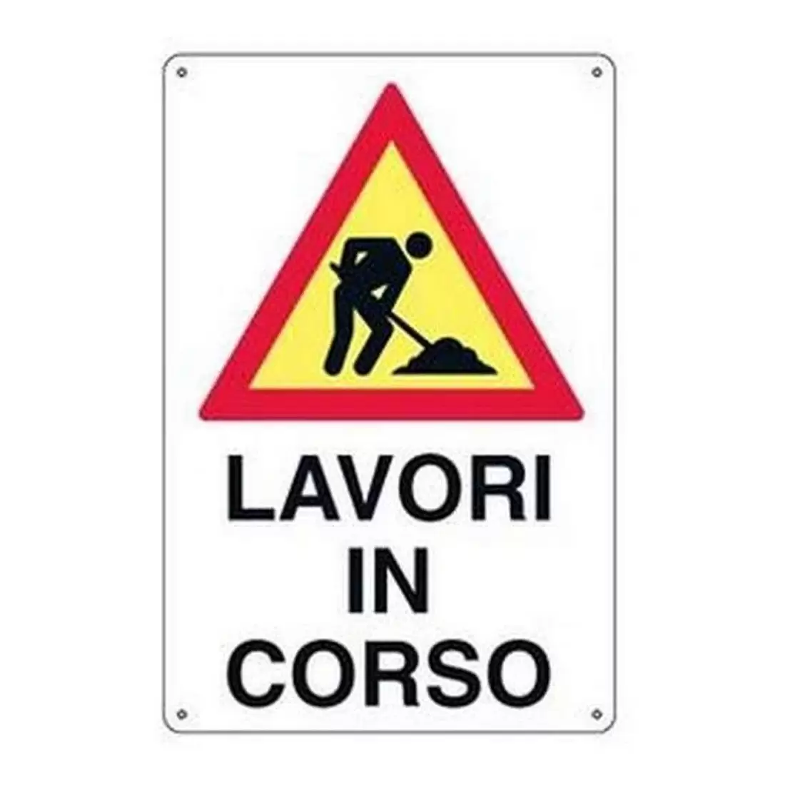 Il cartello di FT in PVC “Lavori in Corso” è ideale per l’utilizzo nelle aree di cantiere.