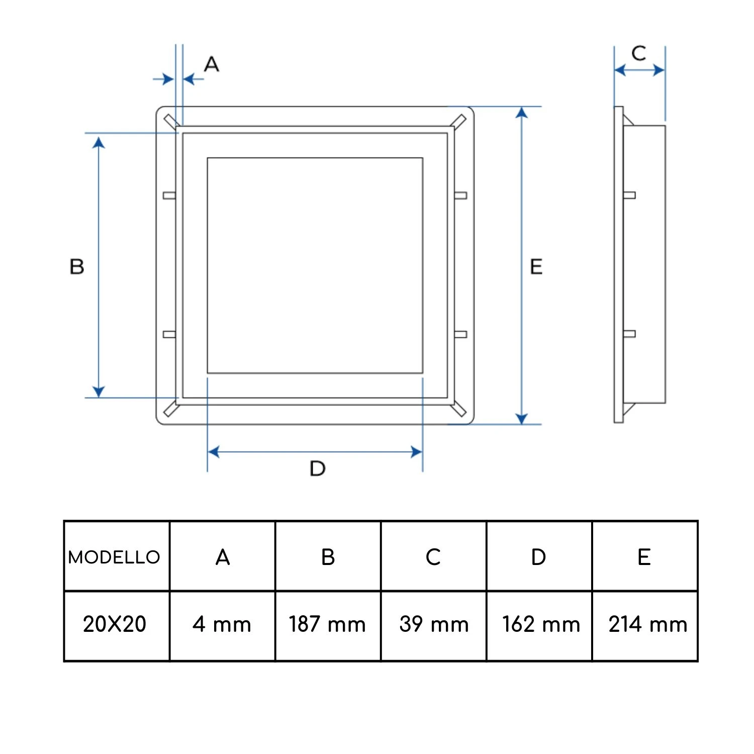 - 20 cm x 20 cm