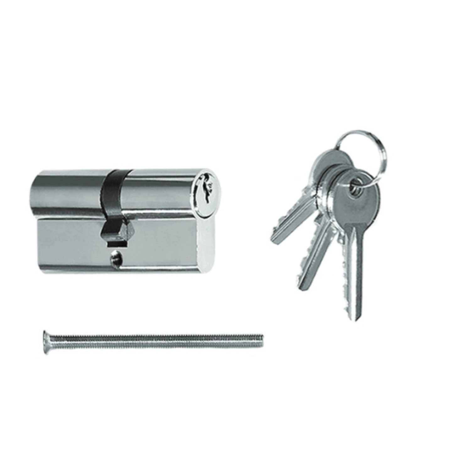 Cilidro standard per porte tagliafuoco Ninz Progect e univer. Cilindro passante nichelato dotato di tre chiavi proprie, lunghezza 40/40 per anta con spessore 60 mm.