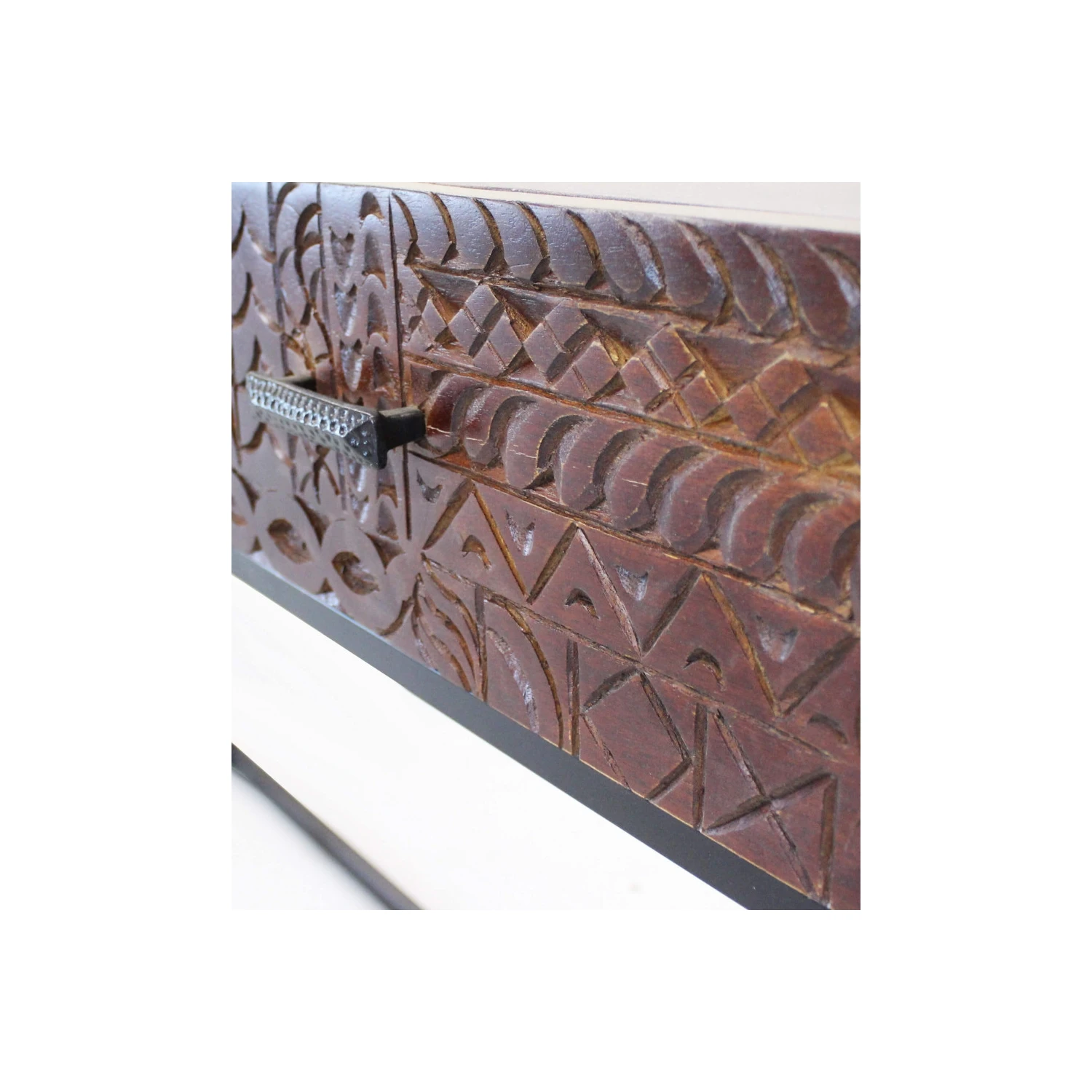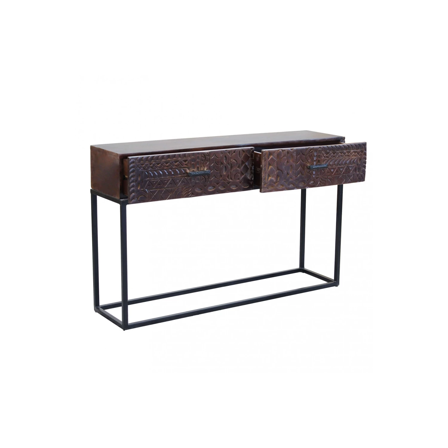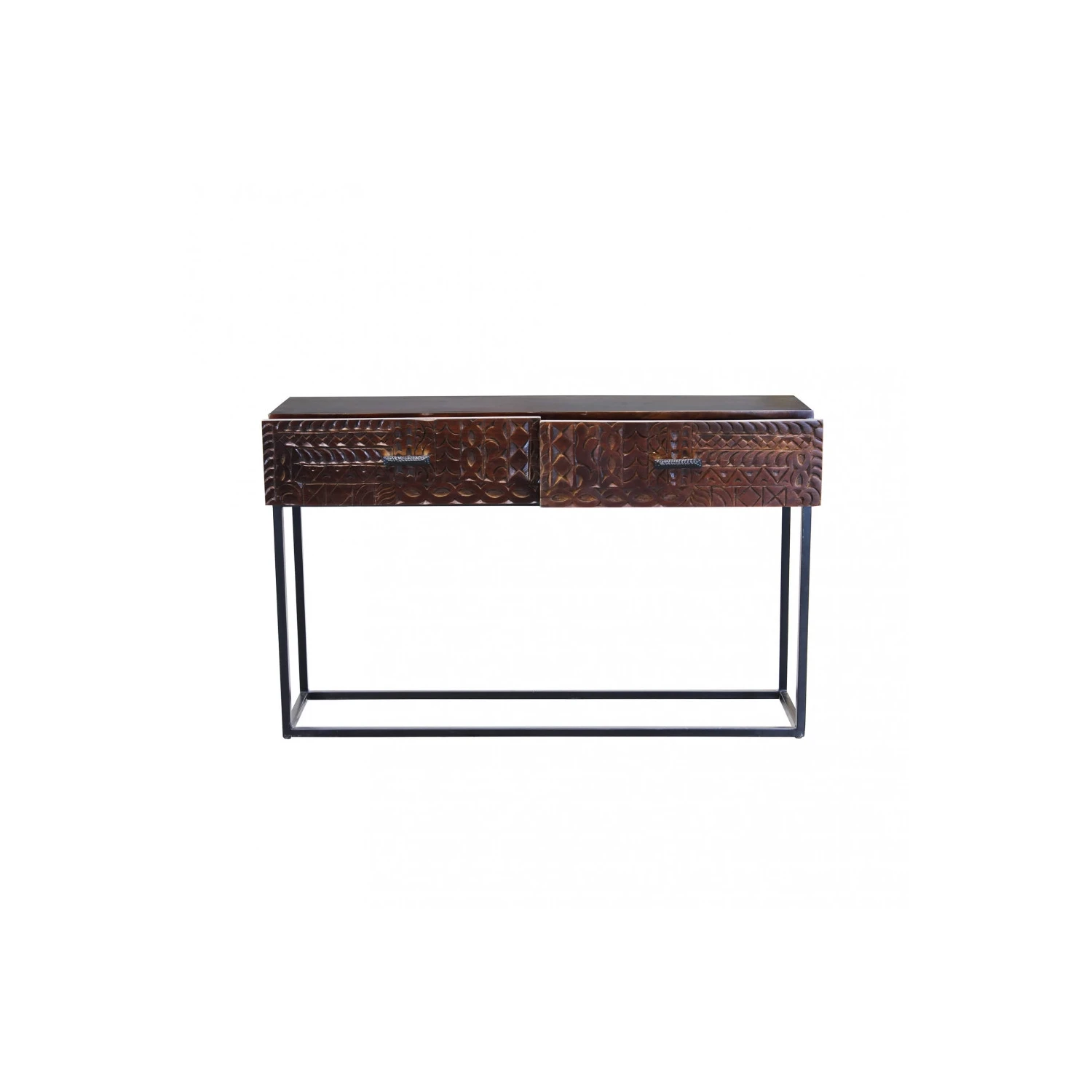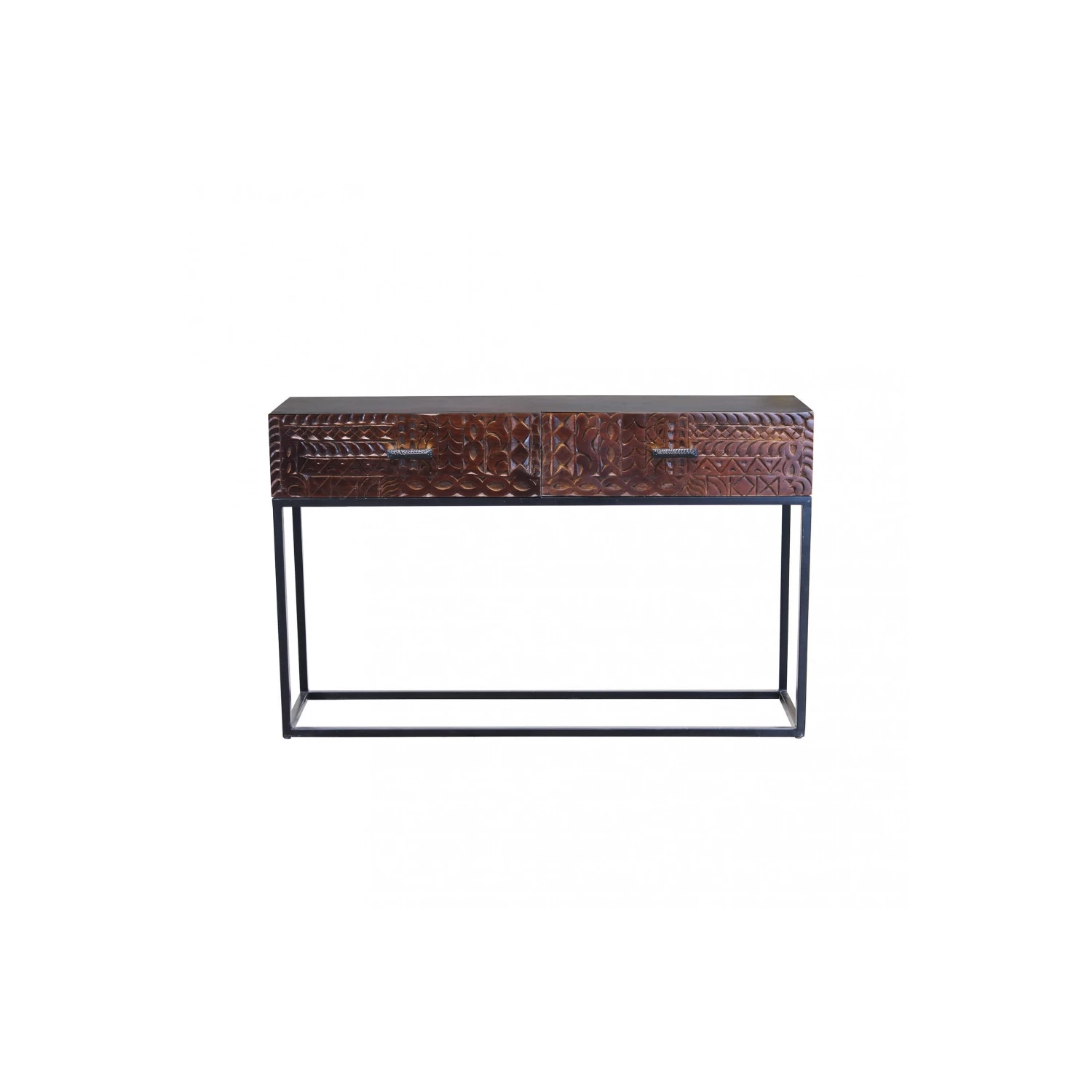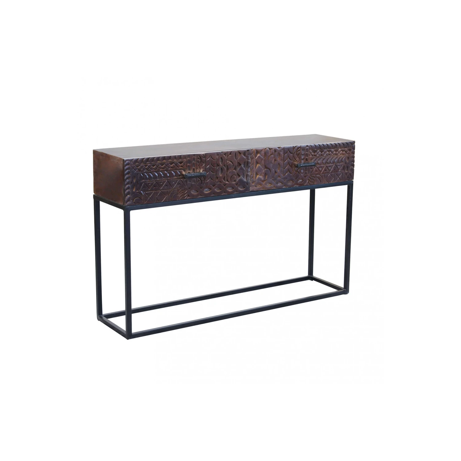 Consolle con decoro wengé in legno di mango con struttura in ferro Dimensioni: cm 120 x 30 x 76 h