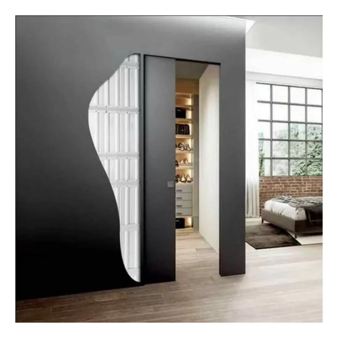 Essential Scrigno è un controtelaio per porte scorrevoli filomuro; senza stipiti e cornici copriprofilo. Sia fisicamente che visivamente, la parete si presenta libera da stipiti e da altre finiture, lasciando alle aperture tra un ambiente e l’altro la massima continuità e fluidità.