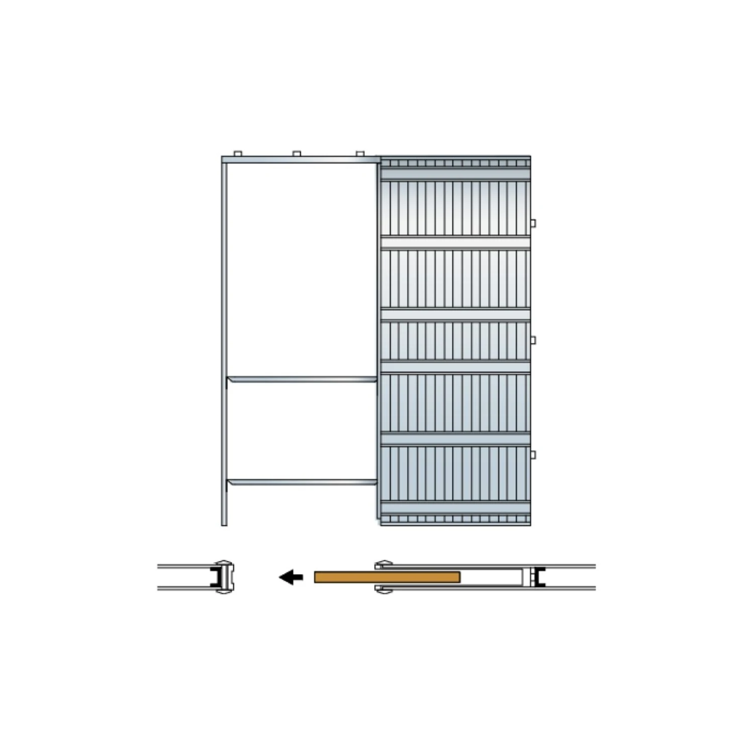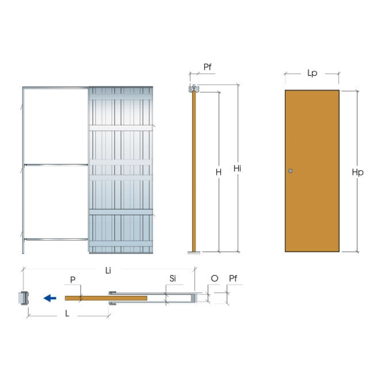Accessoriabile con stipiti grezzi, in melaminico o in alluminio per la versione vetro, kit ferramenta per ante in vetro con stipiti e kit pinze.