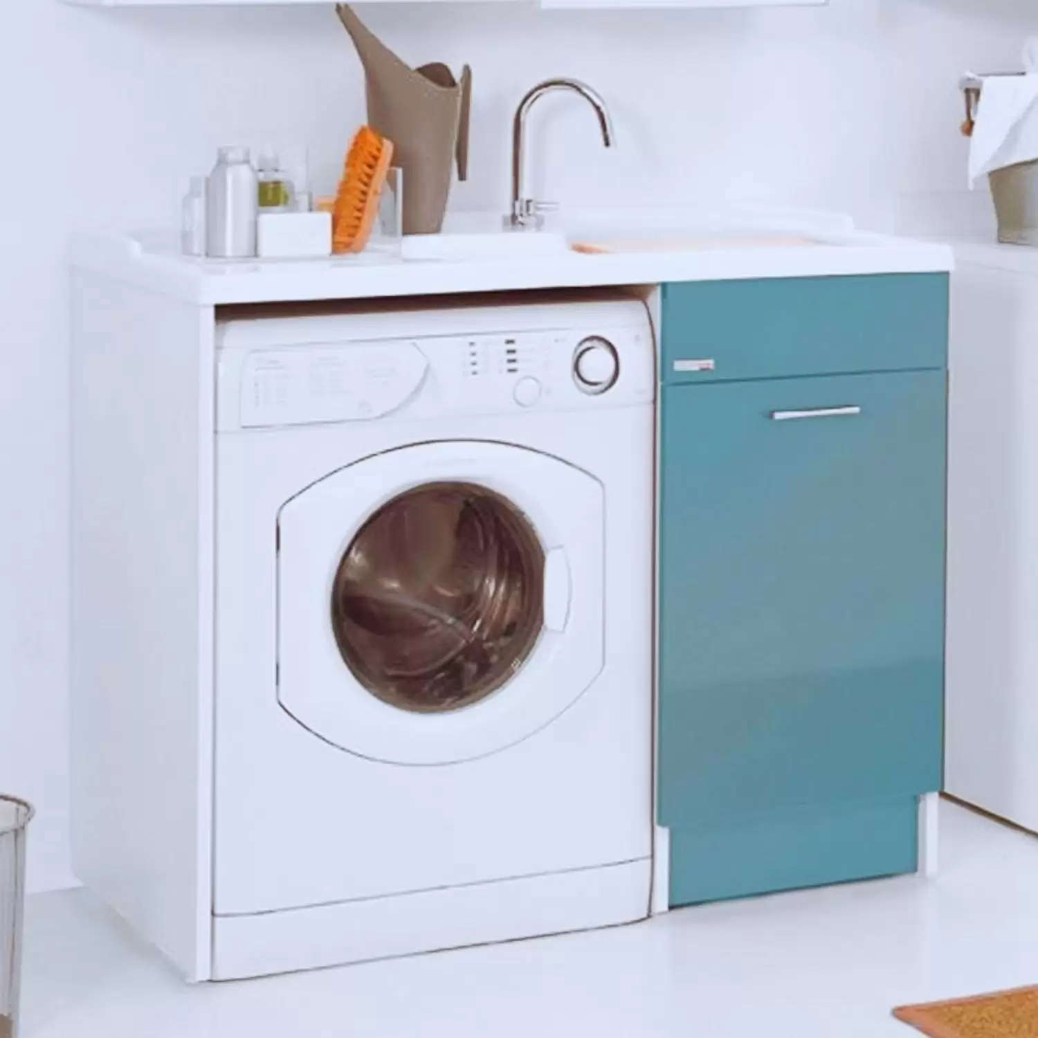Coprilavatrice Con Cestello Portabiancheria 106x60x89h Cm Celeste Duo Colavene Vasca A DX