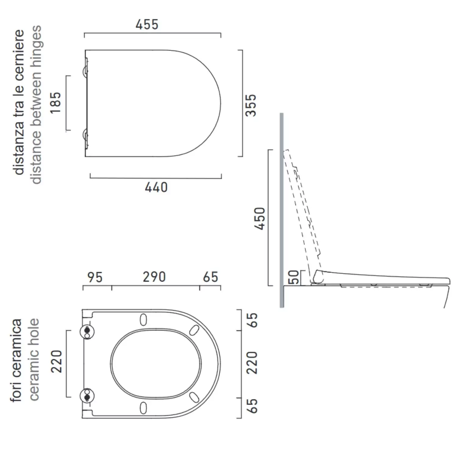 - Distanza cerniere: 18.4 cm
