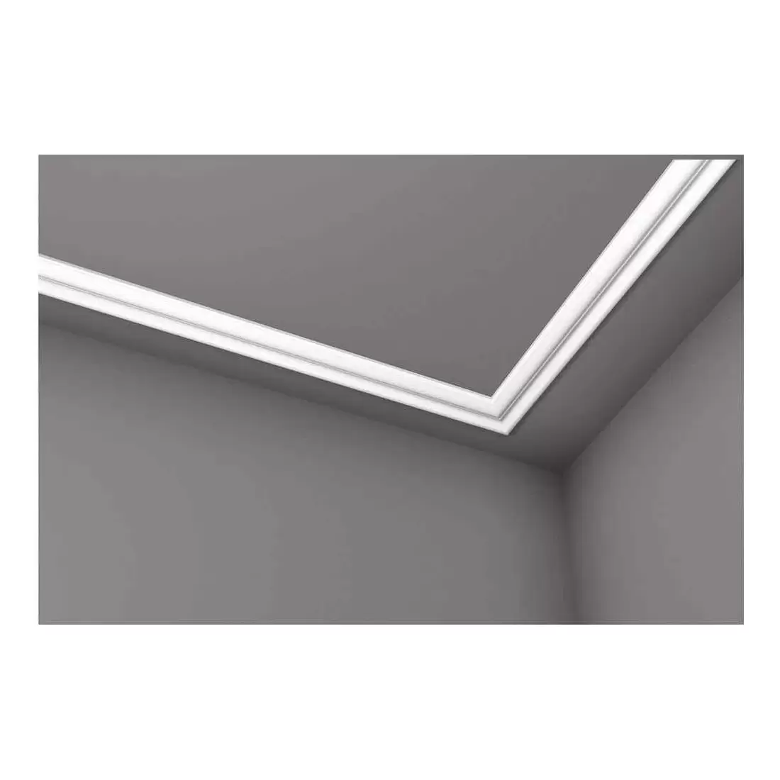 Questa semplice curvatura è un’aggiunta intramontabile per gli interni e fornisce una finitura netta e professionale. La cornice per soffitto N NOMASTYL® è sottile e risalta il naturale passaggio dalla parete al soffitto. Grazie al polistirene resistente all’umidità, la modanatura N NOMASTYL® è ideale per gli spazi umidi.