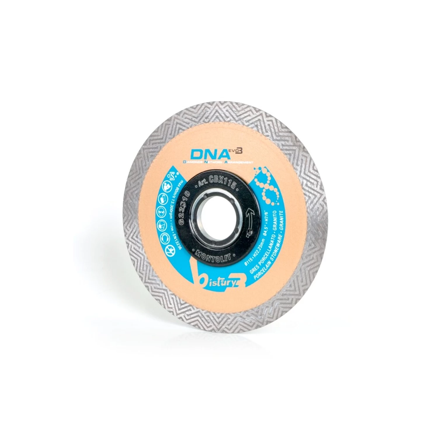 La tecnologia DNA di Montolit consente una distribuzione tridimensionale ottimizzata dei granuli di diamante, garantendo uniformità e prestazioni elevate in ogni taglio. Questo assicura velocità, precisione e durata straordinarie.