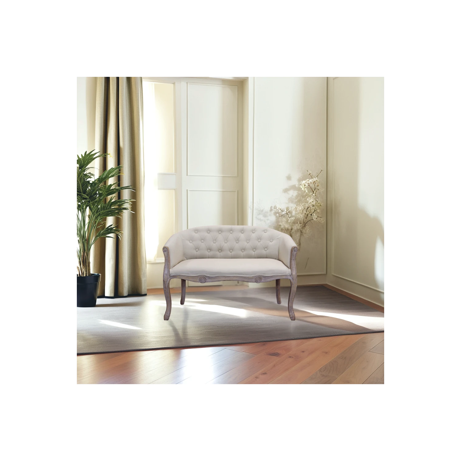 Divano 2 posti stile classico in tessuto Beige. Dimensioni: cm 107 x 61 x 70 h