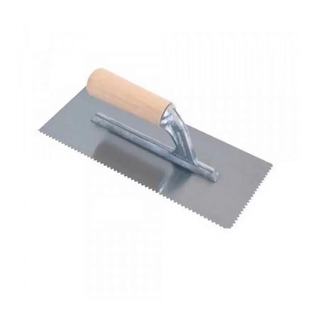 - La spatola dentata ha una lamina in acciaio temperato 6/10 con uno speciale trattamento antiruggine