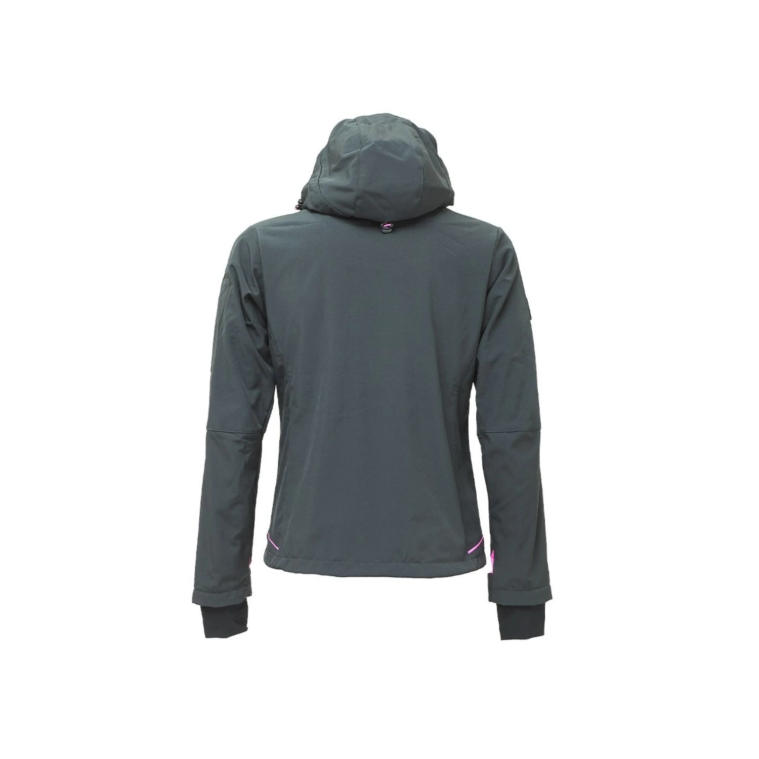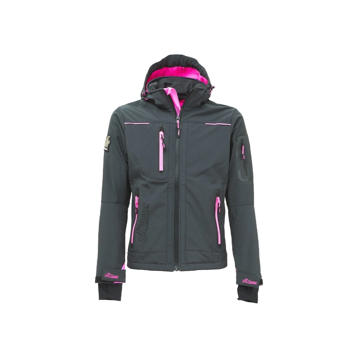 Giacca in Softshell con membrana U-Tex che rende il tessuto impermeabile, traspirante e antivento. Giacca molto comoda e resistente con una fodera interna in morbido micro-fleece fluo. Chiusura centrale con zip impermeabile. Maniche preformate per vestibilità ottimale, cappuccio regolabile e staccabile, polsini regolabili con velcro e polsino antivento elasticizzato con foro passa-pollice. Dotato di due tasche frontali chiuse con zip fluo e coulisse antimpigliamento regolabile all’interno. Una tasca porta cellulare sul petto con tecnologia Free Sound chiusa con zip fluo. Due ampie tasche interne. Tasca supplementare termosaldata su manica sinistra. Fondo sagomato. Nastro reflex su colletto nella parte posteriore. Logo U-Power tono su tono.