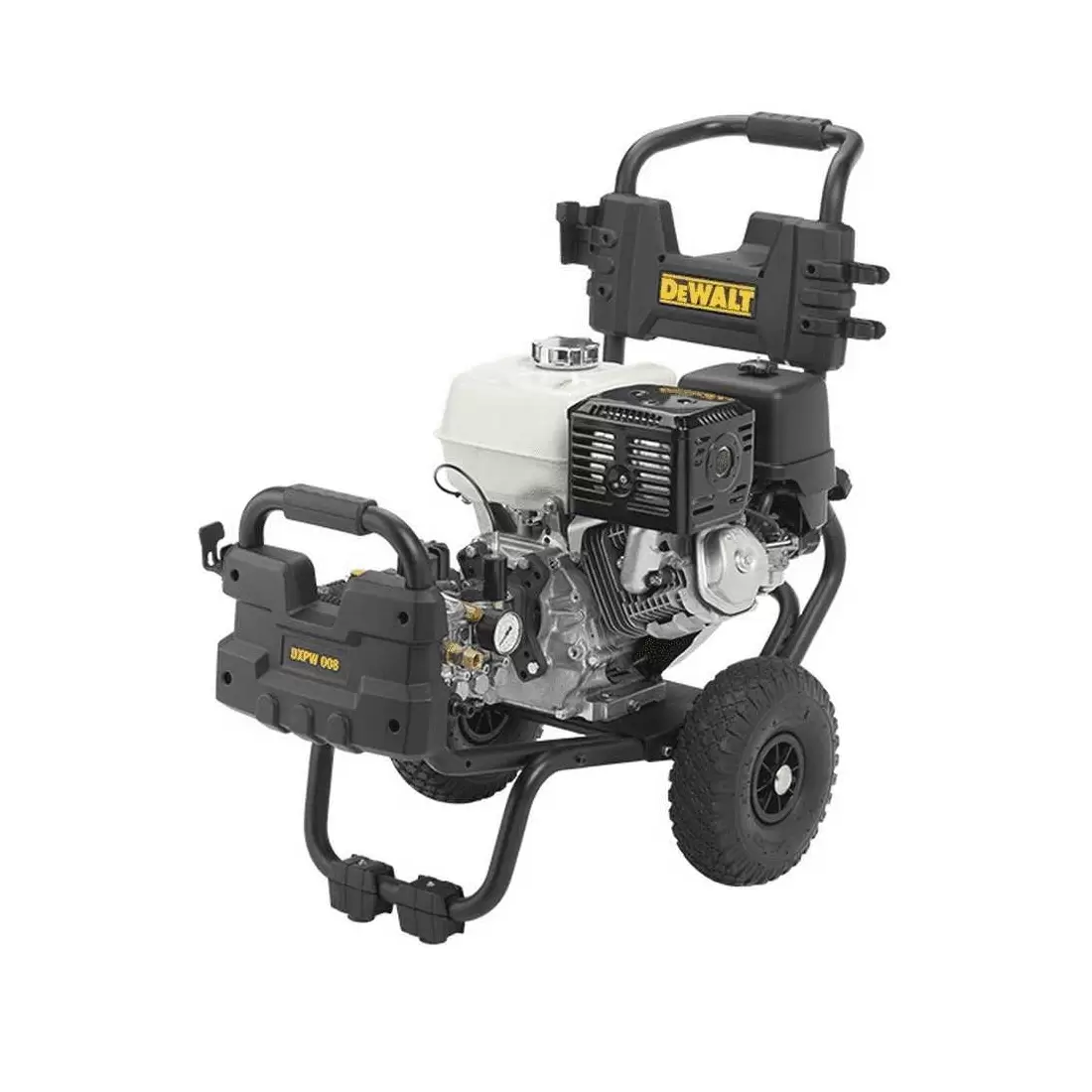 L’idropulitrice con motore a scoppio 190bar 4.8Hp 600Lt/h DXPW008E di DeWalt ha una trasportabilità estrema grazie al carrello in dotazione.