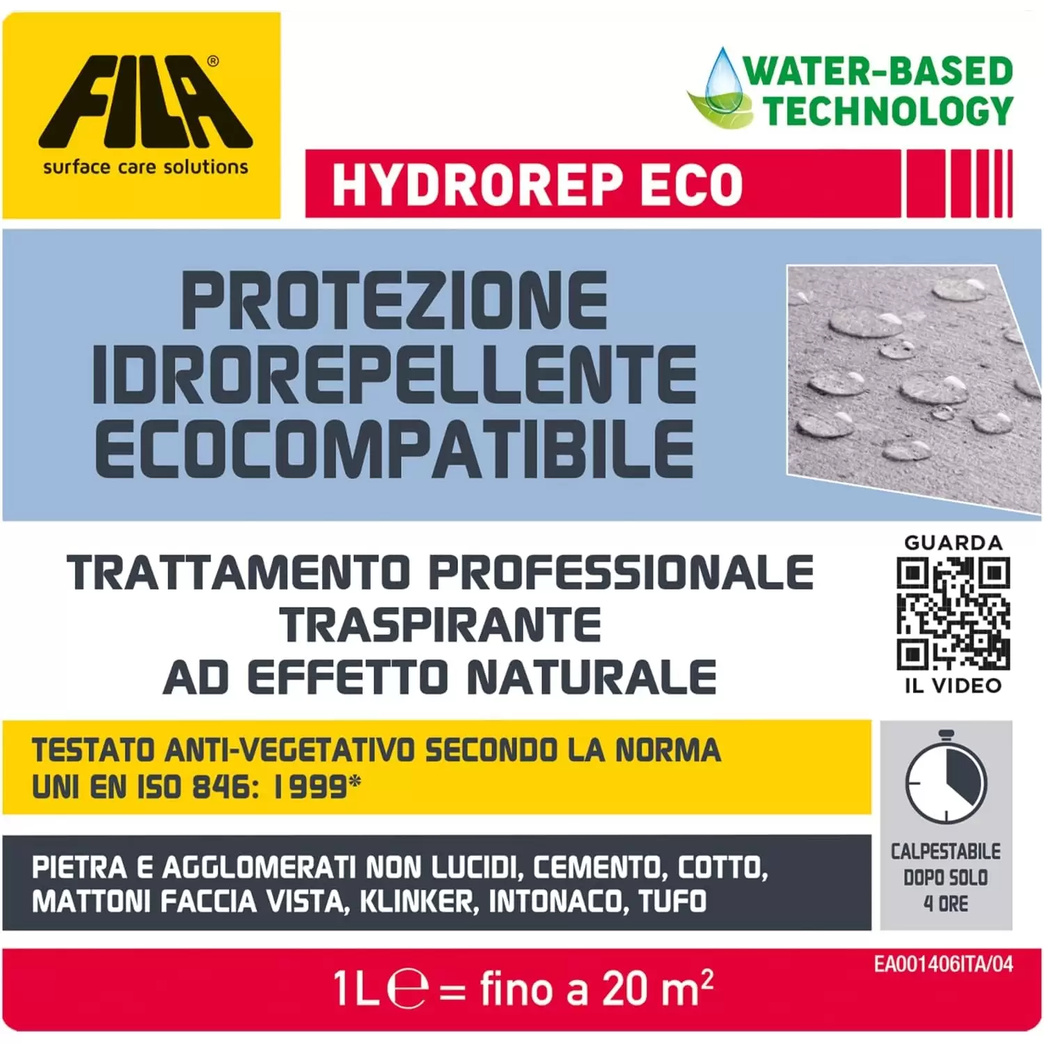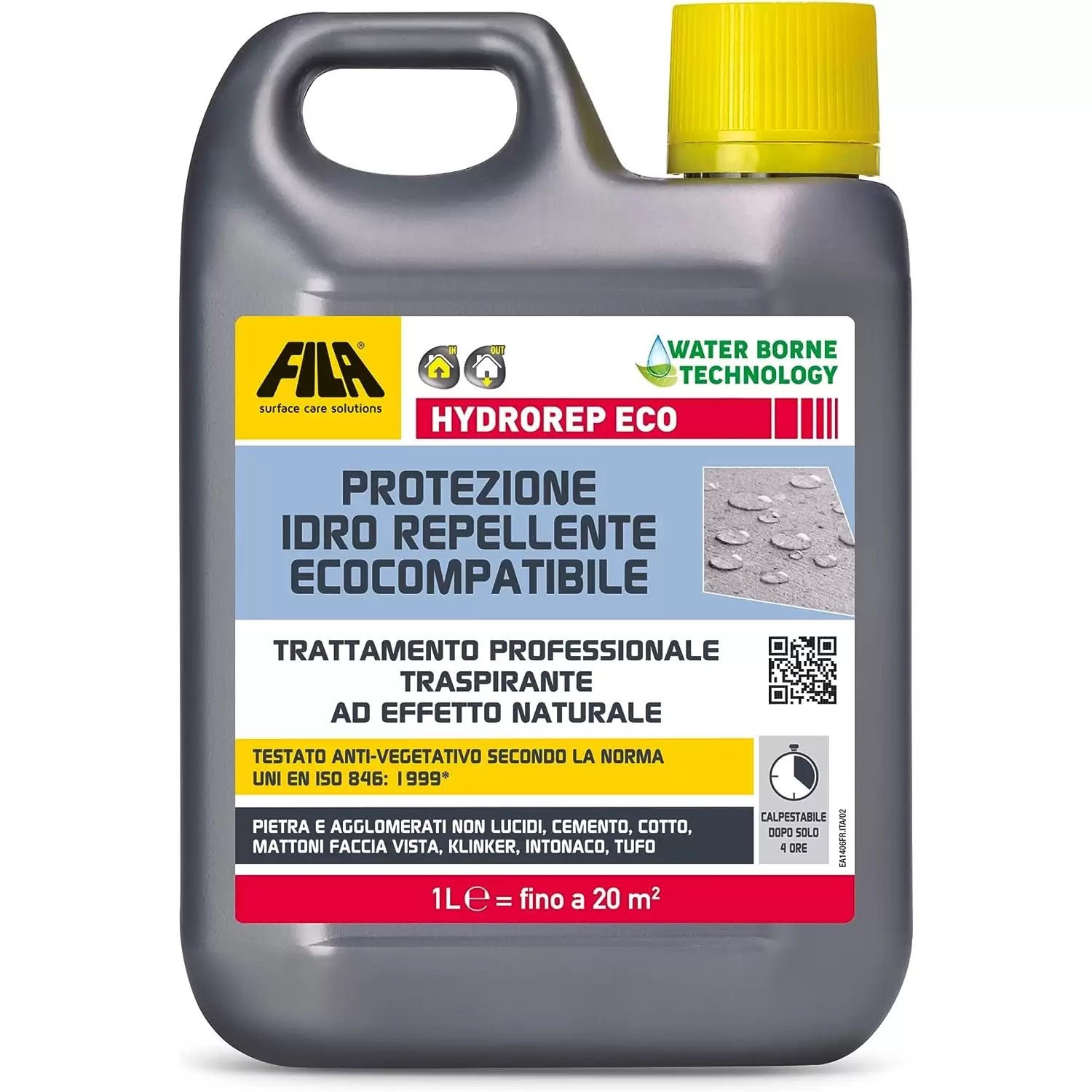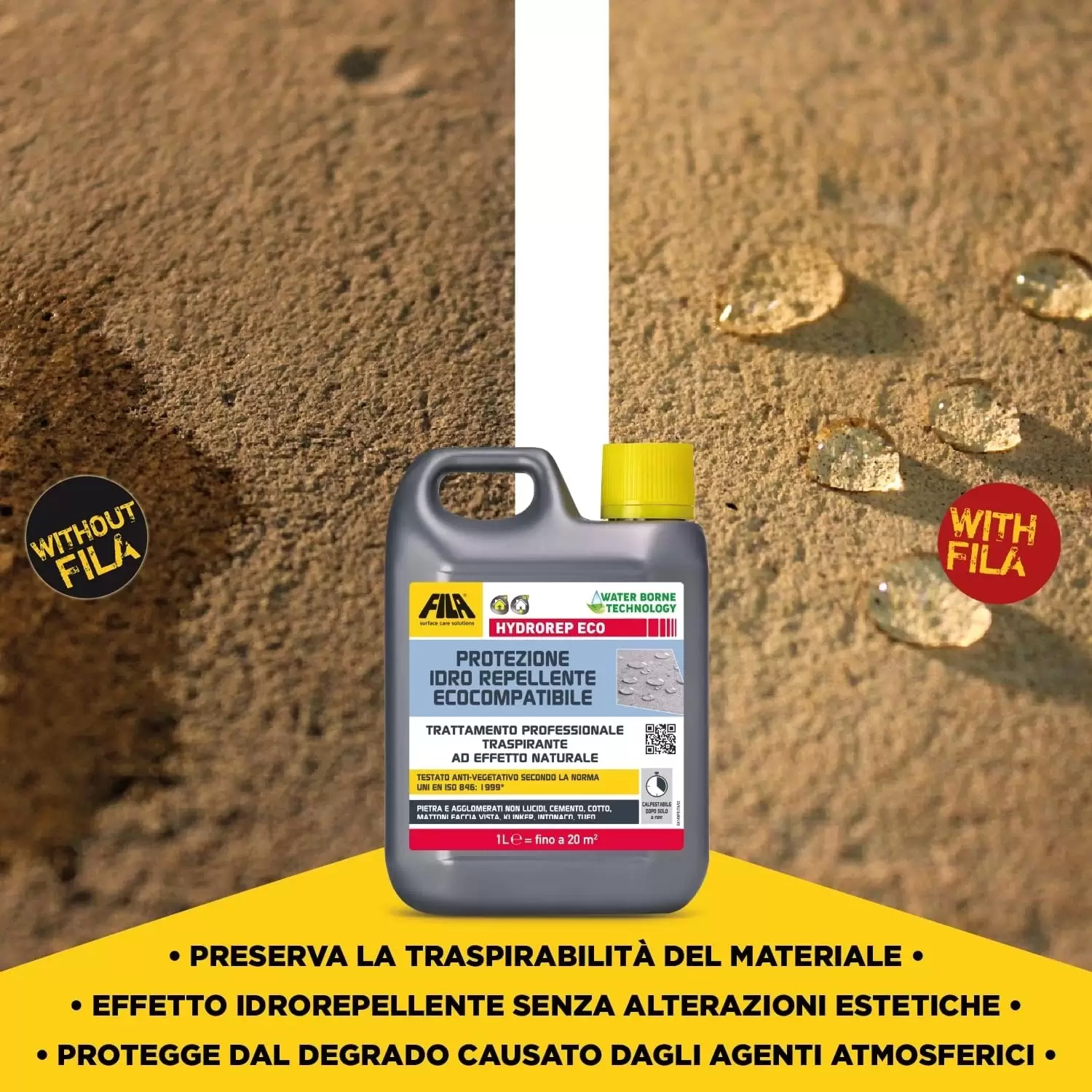 - Hydrorep Eco si lega chimicamente con il materiale, fissandosi all’interno delle porosità senza sigillarne la superficie, così facendo si ottiene una protezione che respinge l’acqua, mantenendo il naturale passaggio del vapore verso l’ esterno.
