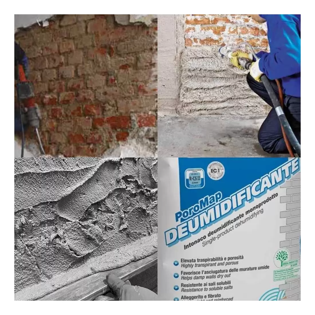 E’ un’intonaco monoprodotto e monostrato composto da leganti idraulici speciali a reattività pozzolanica e resistenti ai sali solubili, sabbie naturali, aggregati leggeri, speciali additivi, a bassissima emissione di sostanze organiche volatili per risanare le murature degradate.