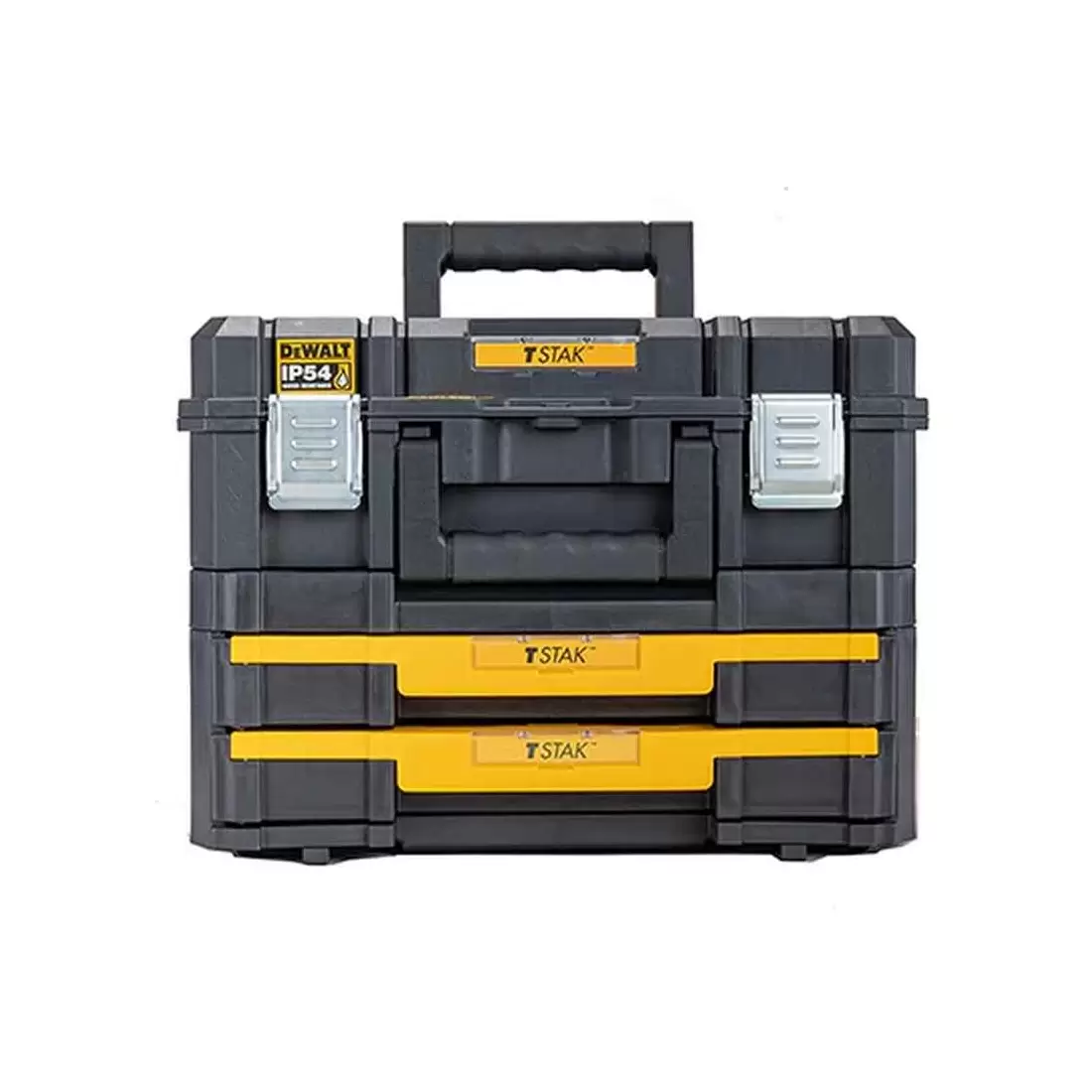 Kit TStak combo II + IV con certificazione IP54, protezione da acqua e polvere. Inserto di schiuma interna e bloccabile tramite lucchetto NON incluso. Dotato di comode maniglie anteriori che facilitano il trasporto. Chiusure laterali con perni metallici, che consentono il collegamento agli altri moduli TStak.