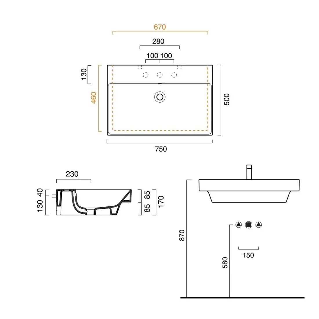 Lavabo Bagno 75×50 Cm Zero 75 175ZP00 Catalano