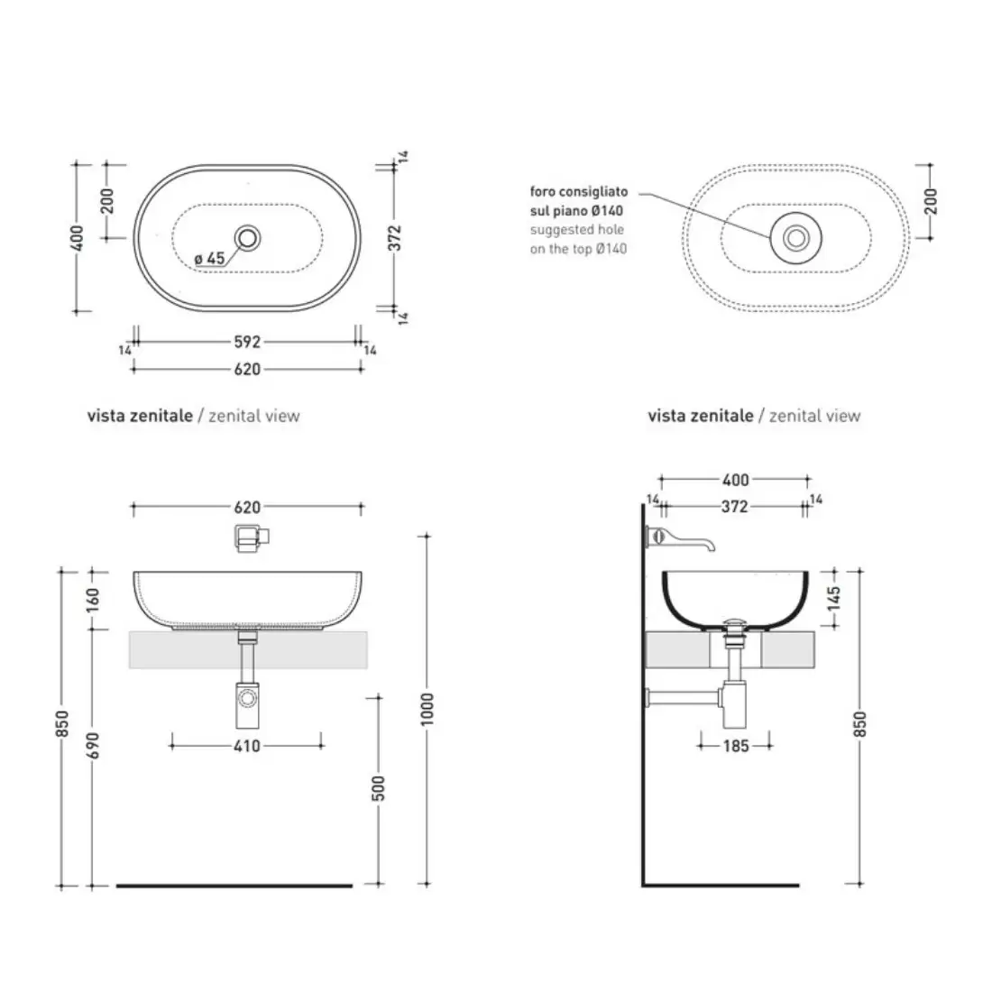 - Lavabo appoggio con foro centrale