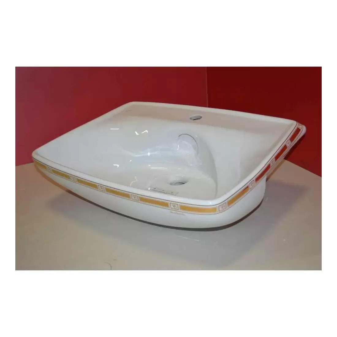 Lavabo semincasso bianco della serie Esedra, con lacche in oro, di Catalano, col design By Renato Balestra.