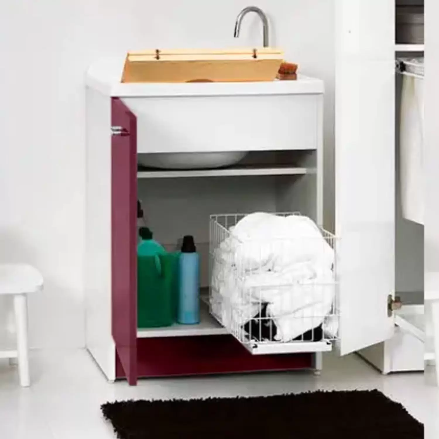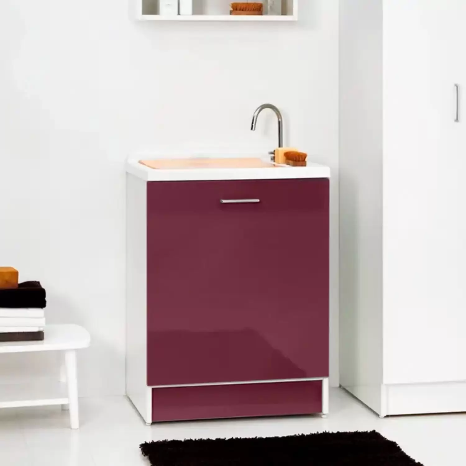 Lavatoio Con Cesto Portabiancheria 65x55x89h Cm Melanzana Lucido Active Wash Colavene
