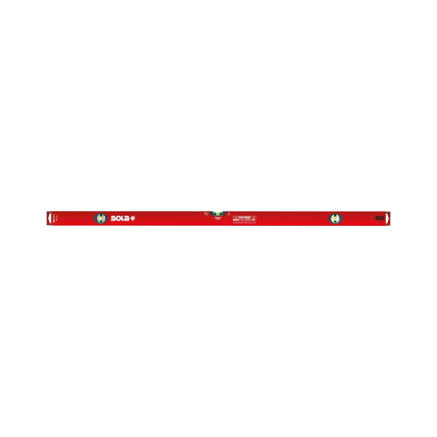 Livella a 3 bolle d’aria in profilo tubolare di colore rosso da 120 cm di Sola. Fiala a blocco in vetro acrilico infrangibile con lente di ingrandimento (+60 %) e 30 anni di garanzia sull’ermeticità. Migliore leggibilità in caso di scarsa luminosità grazie ad un rivestimento fluorescente SOLA ottimizzato. I tappi ammortizzatori d’urto alle estremità, in bicomponente, offrono una protezione ottimale da eventuali danneggiamenti. Precisione di misurazione molto elevata in posizione standard e capovolta.