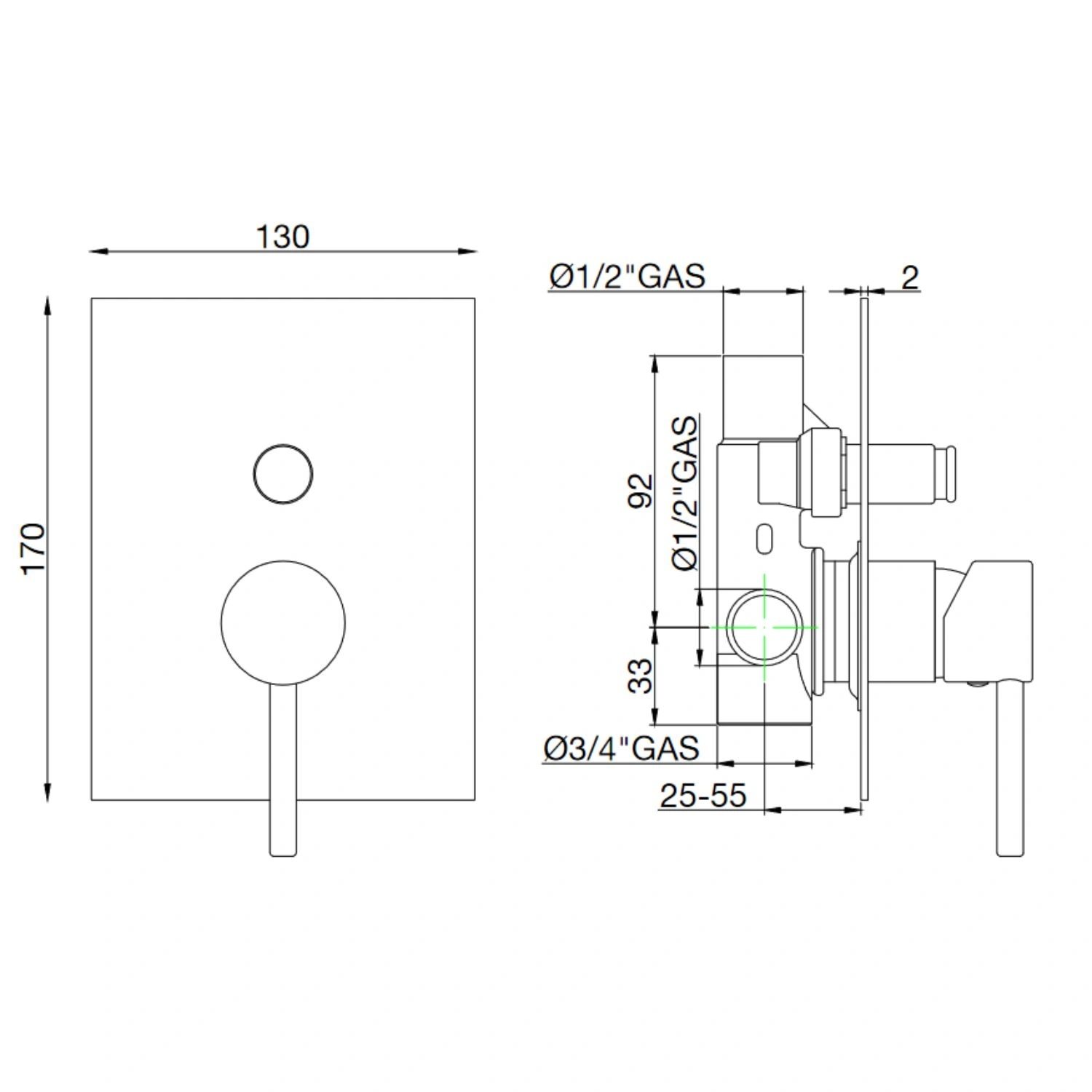Miscelatore incasso per doccia e vasca con deviatore automatico e piastra acciaio Cartuccia Ø 35 mm (Art. 295) Finitura: Cromo