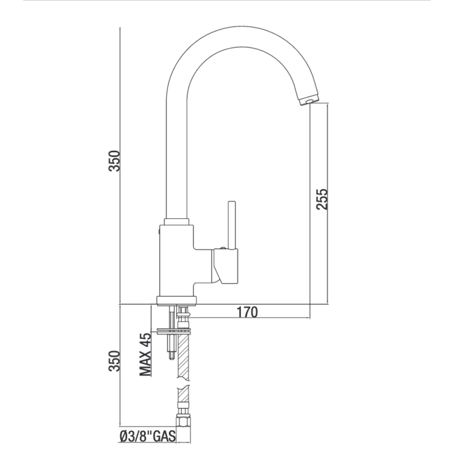 - Miscelatore lavello, con canna a ponte girevole Ø 26mm