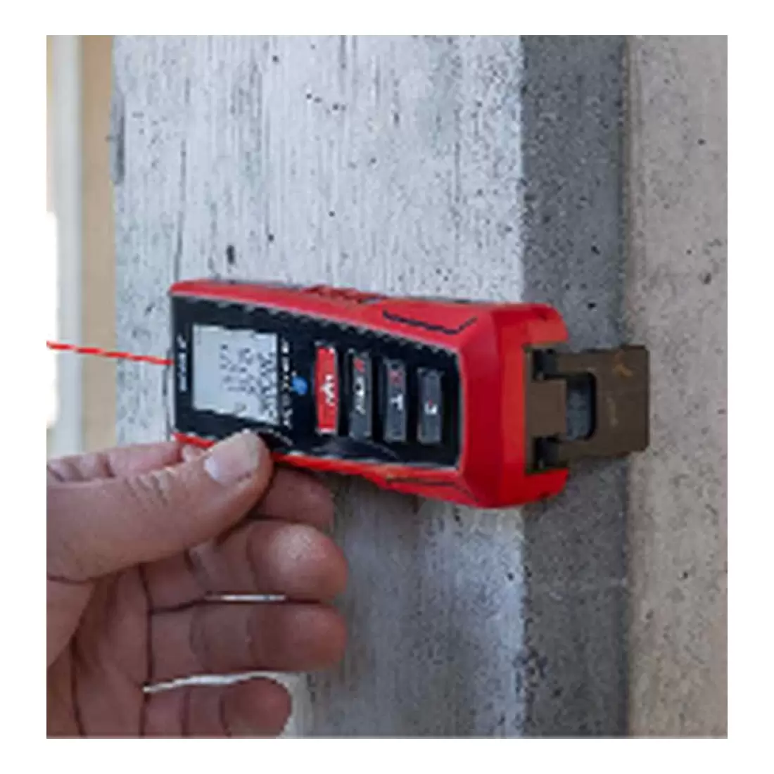 Misuratore laser di distanze METRON 60 BT, dotato di dispositivo di arresto a 90° per le misurazioni dai bordi esterni. Interfaccia Bluetooth integrata per trasmissione dei valori di misura direttamente sullo smartphone. Tramite app compatibile “Sola Measures” è possibile dimensionare direttamente le foto o i piani di costruzione, nonché salvare, gestire e condividere i risultati delle misurazioni.