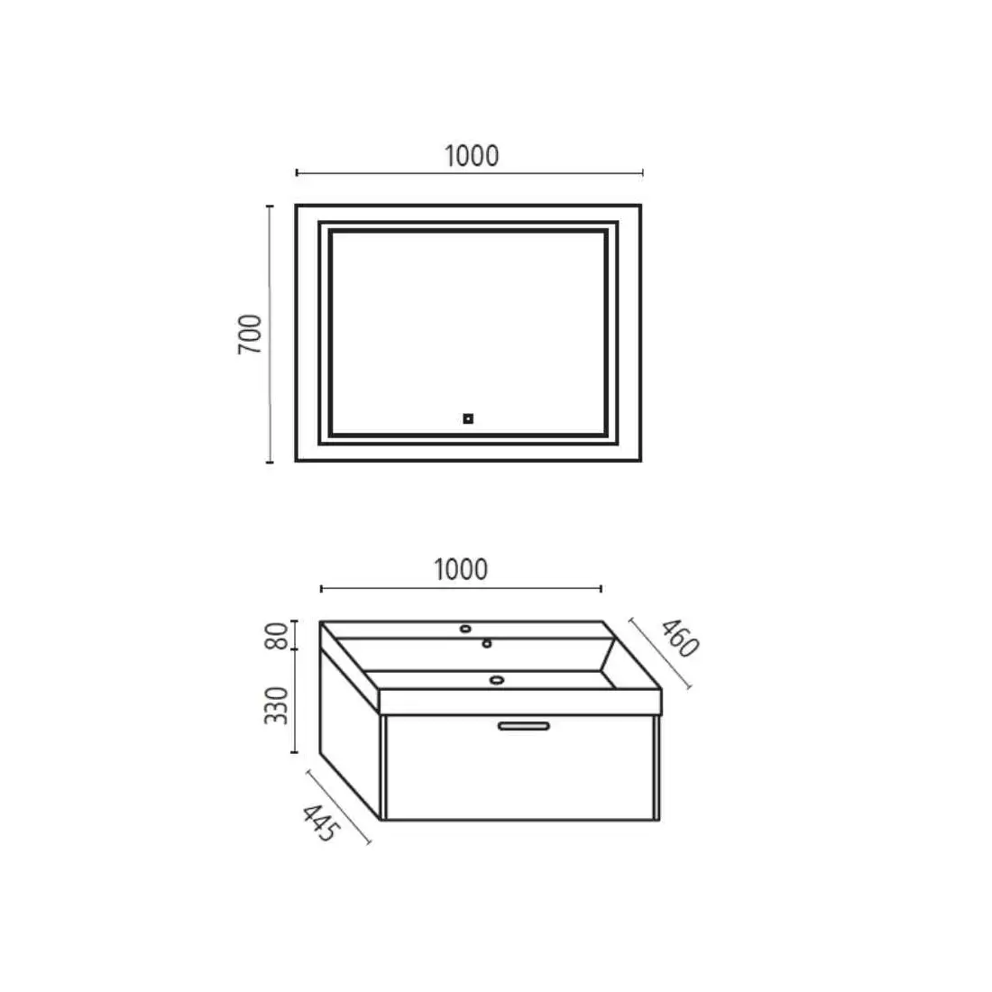 - Dimensioni specchio: L 100 x H 70 cm
