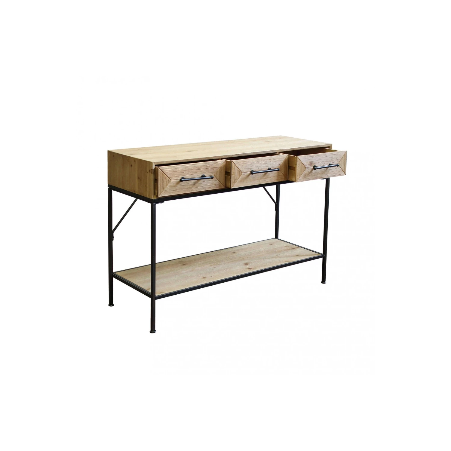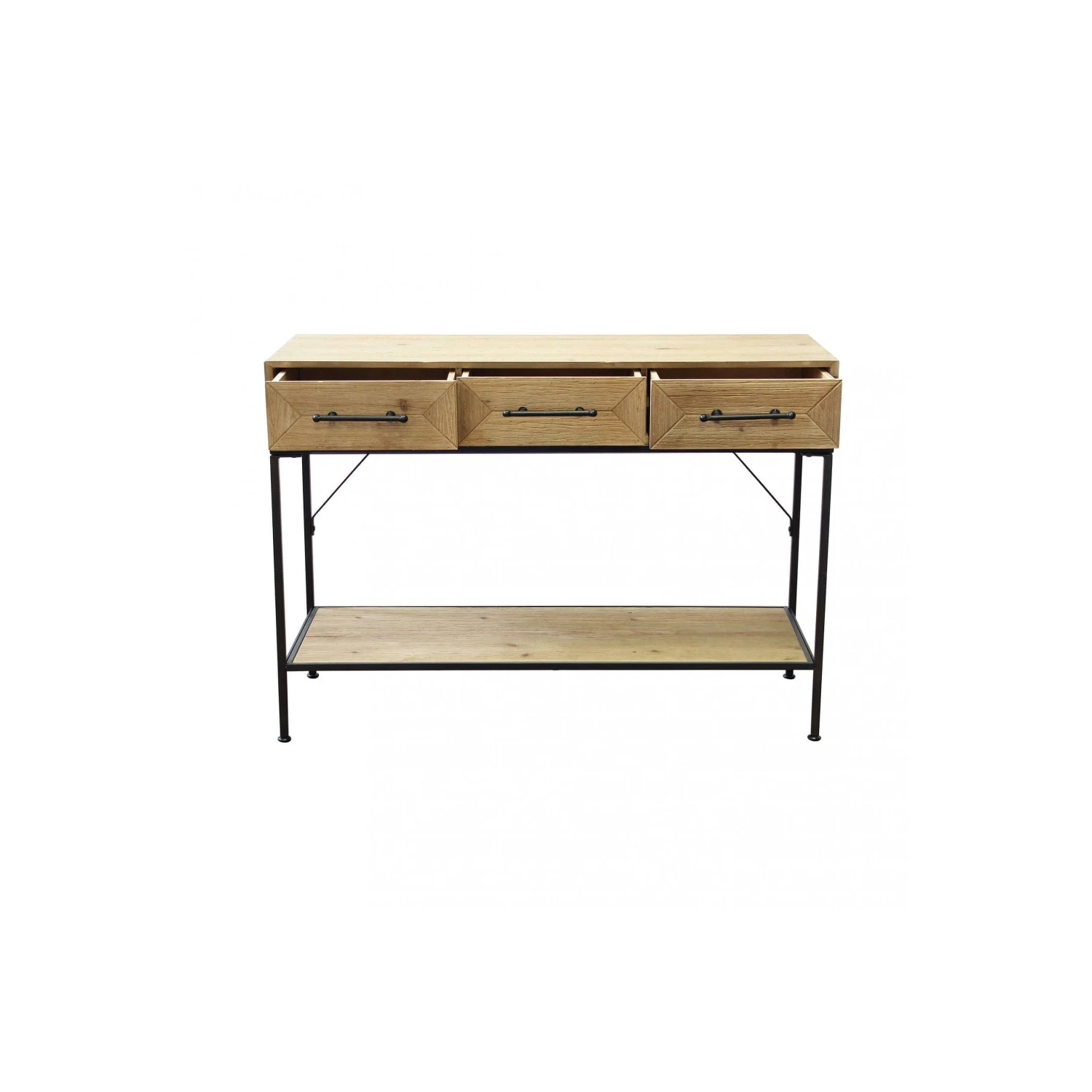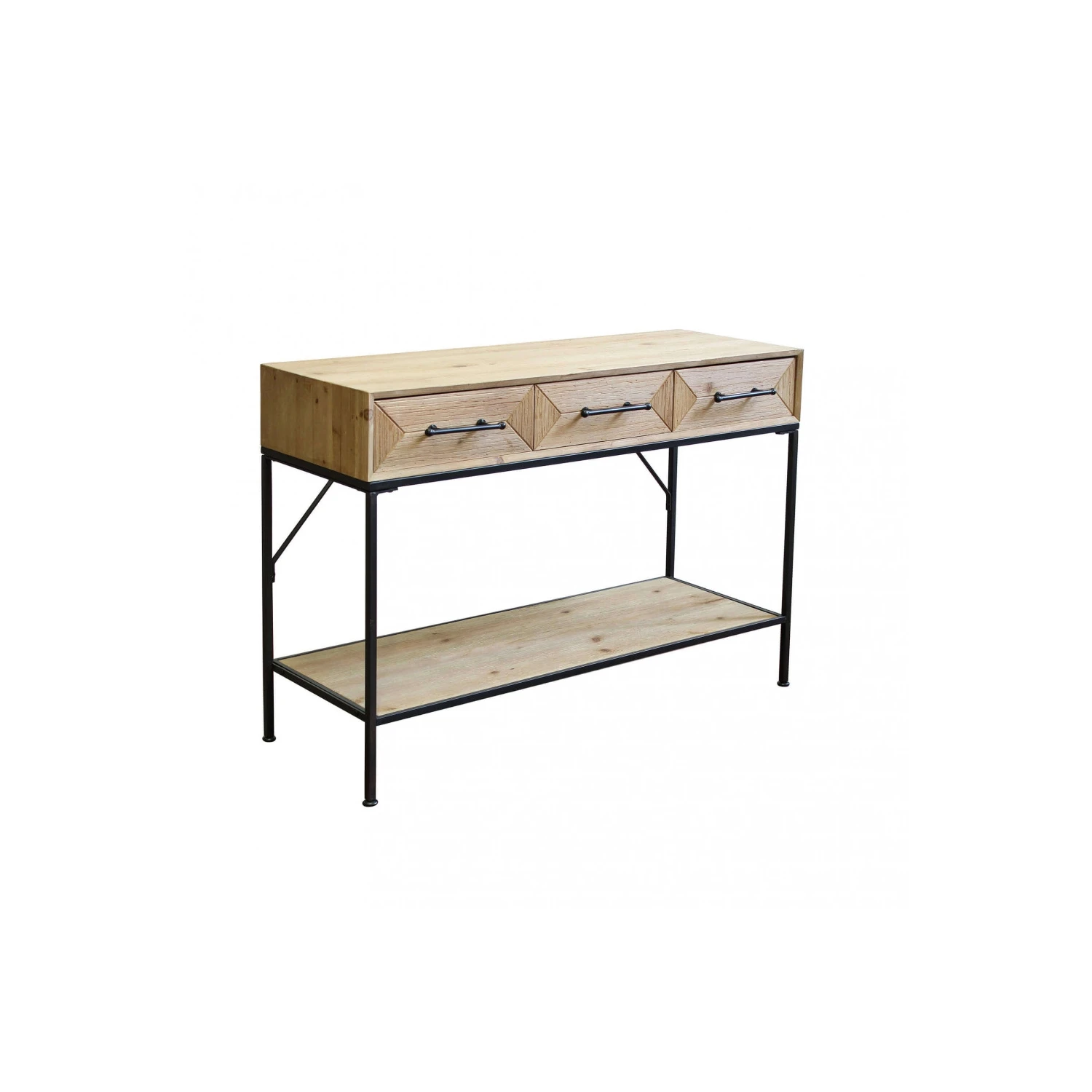 Mobile in ferro e legno con 2 ripiani e 3 cassetti Dimensioni: cm 110,50 x 40 x 76 h