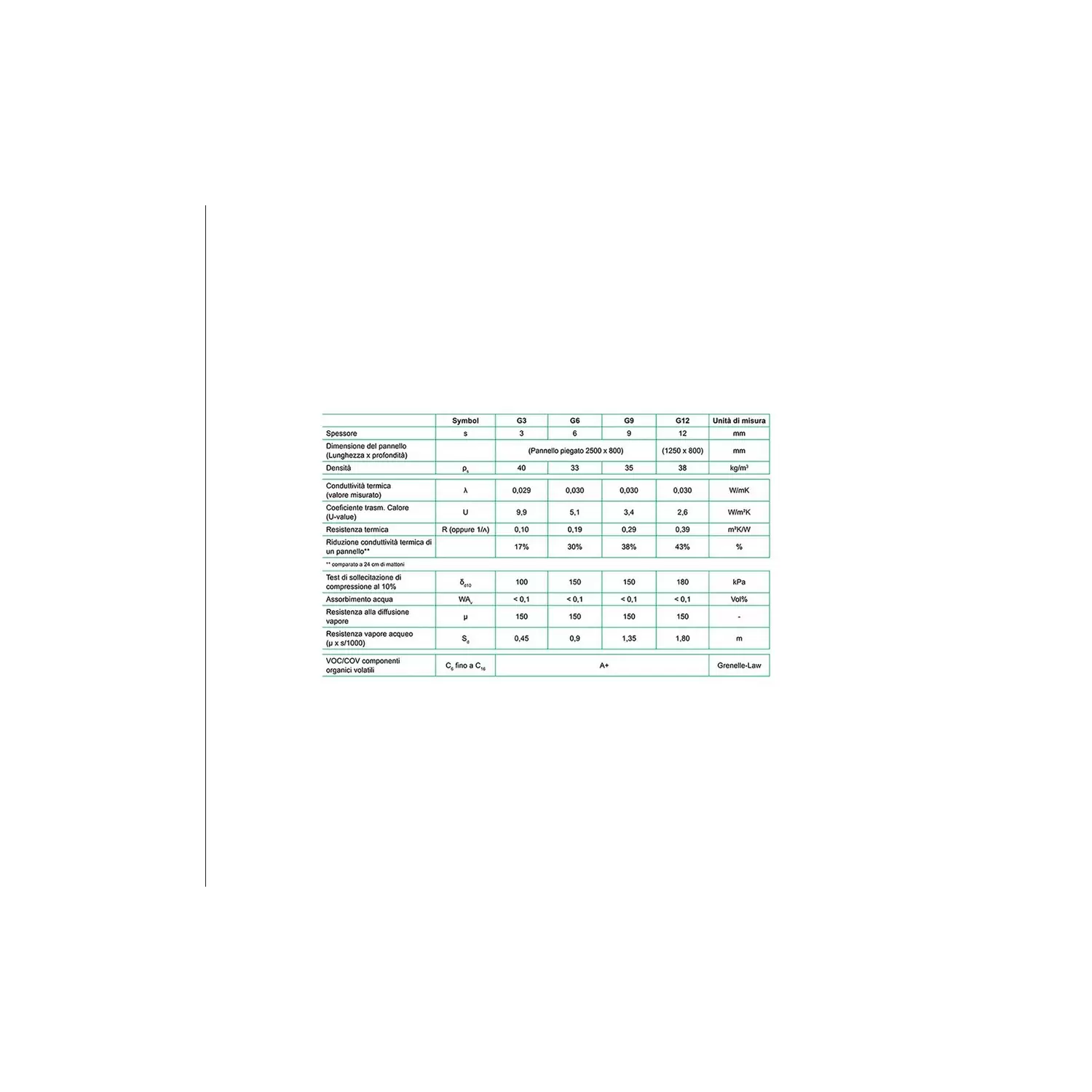 - Conduttività termica: 0.03 W/mK