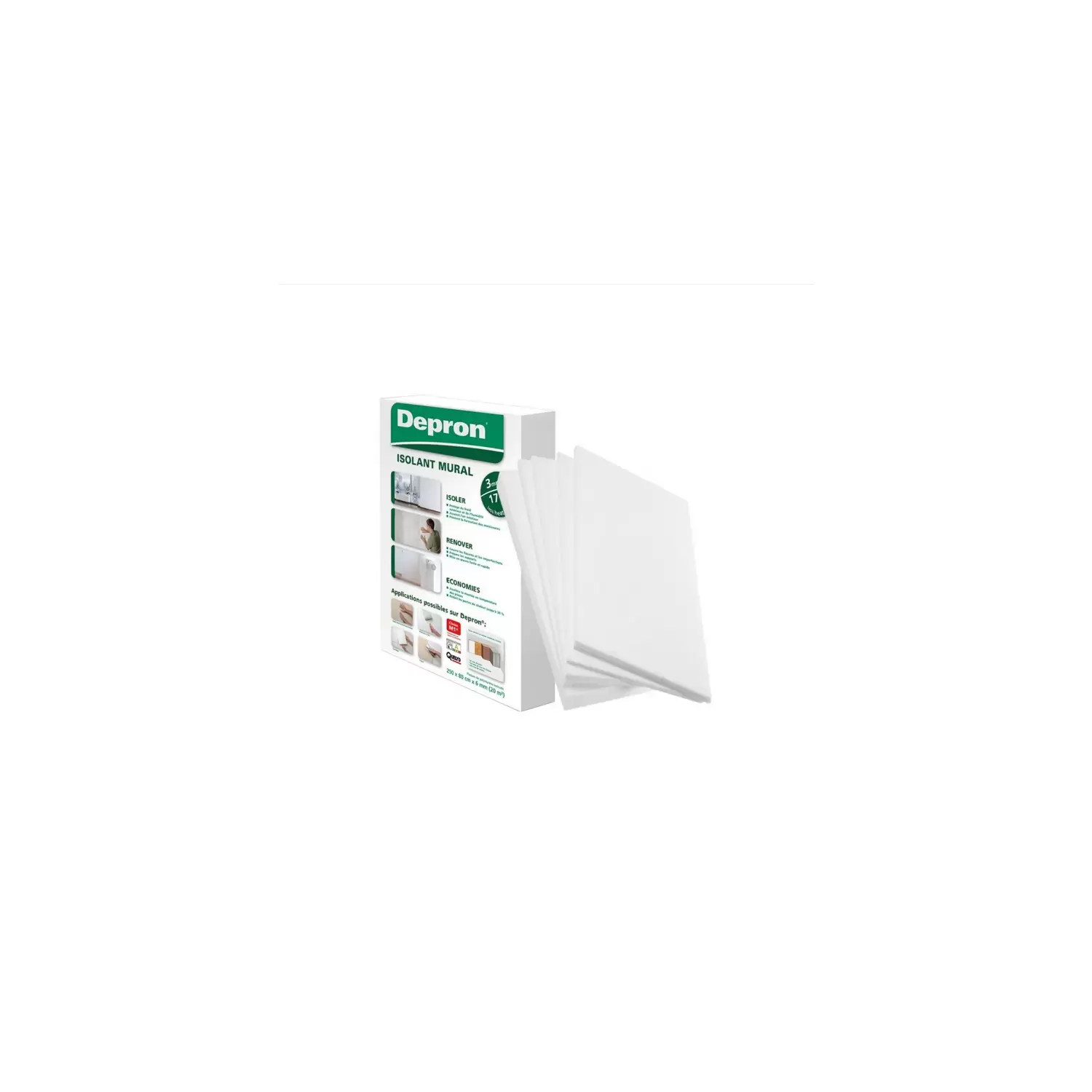 - L’alta resistenza alla pressione del pannello Depron ne fa un buon materiale per l’utilizzo come sotto pavimento o come base per il riscaldamento a pavimento, ma esclusivamente applicandolo sotto parquet, laminati o similari, NON dev’essere applicato sotto piastrelle in ceramica, marmo, ecc. (applicazione orizzontale), ma soltanto sotto rivestimento murale (applicazione verticale).