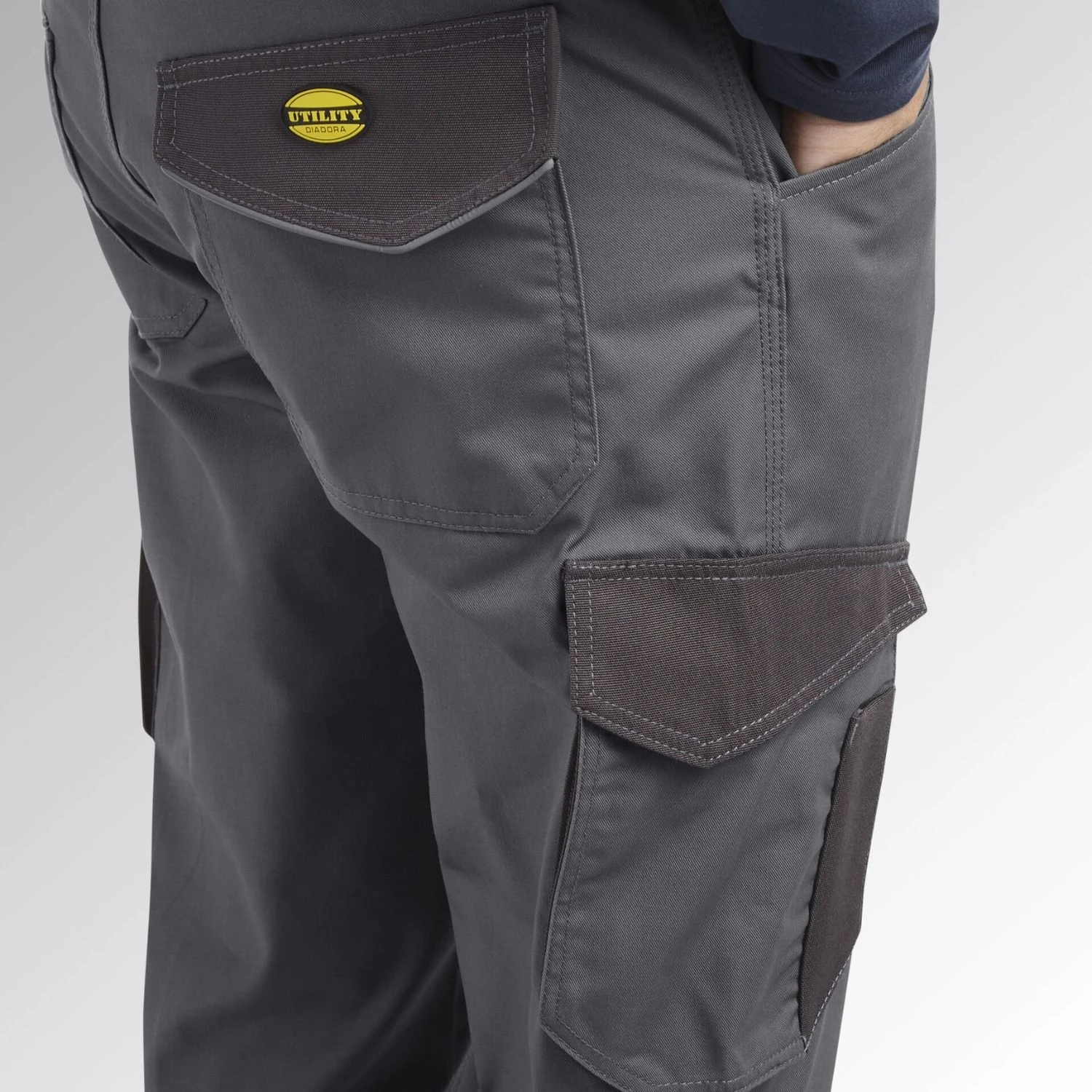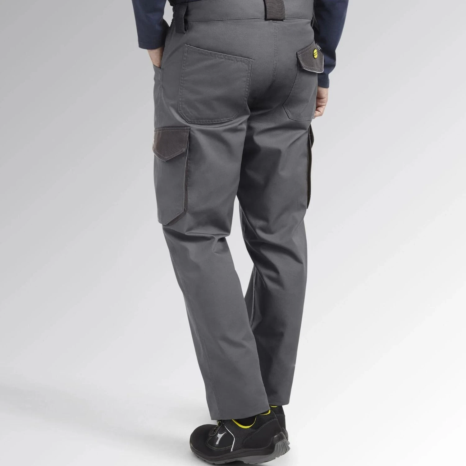 Pantalone cargo, tasca laterale, dettagli rifrangenti e dettagli in contrasto in materiale anti abrasivo, elastico in vita, tripla cucitura.
