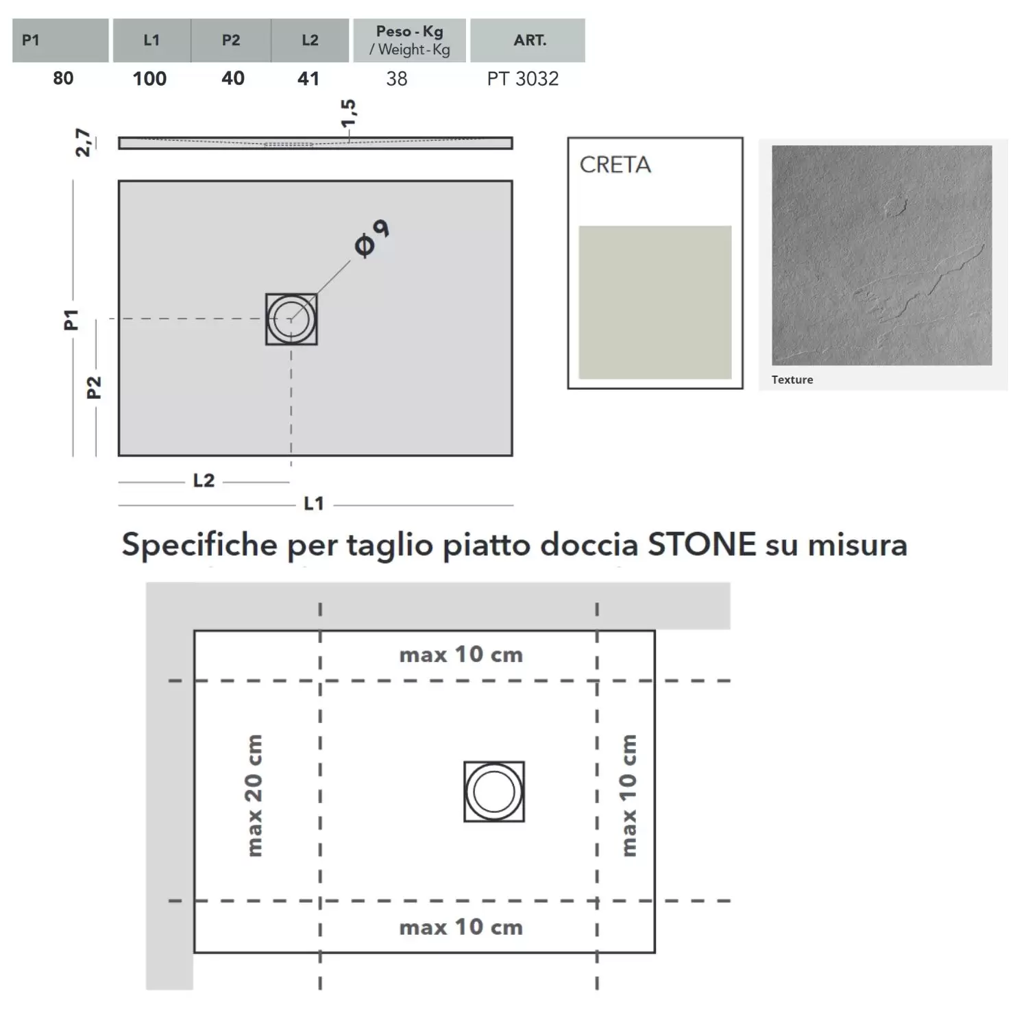 Piatto doccia 100×80 cm effetto pietra Agha creta Stone