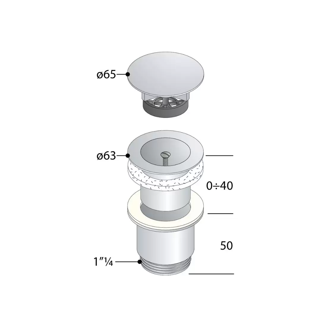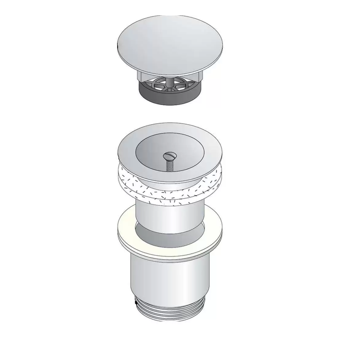 Piletta a vite a scarico libero in ottone cromato per lavabo e bidet.