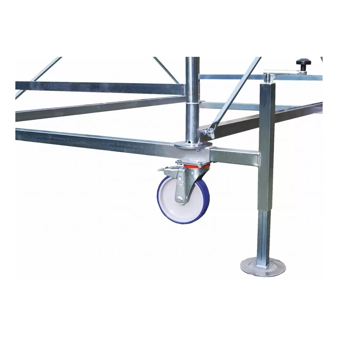- Staffe stabilizzatrici regolabili con doppio braccetto a morsetto per un efficace adattamento al suolo e per garantire la sicurezza durante gli spostamenti