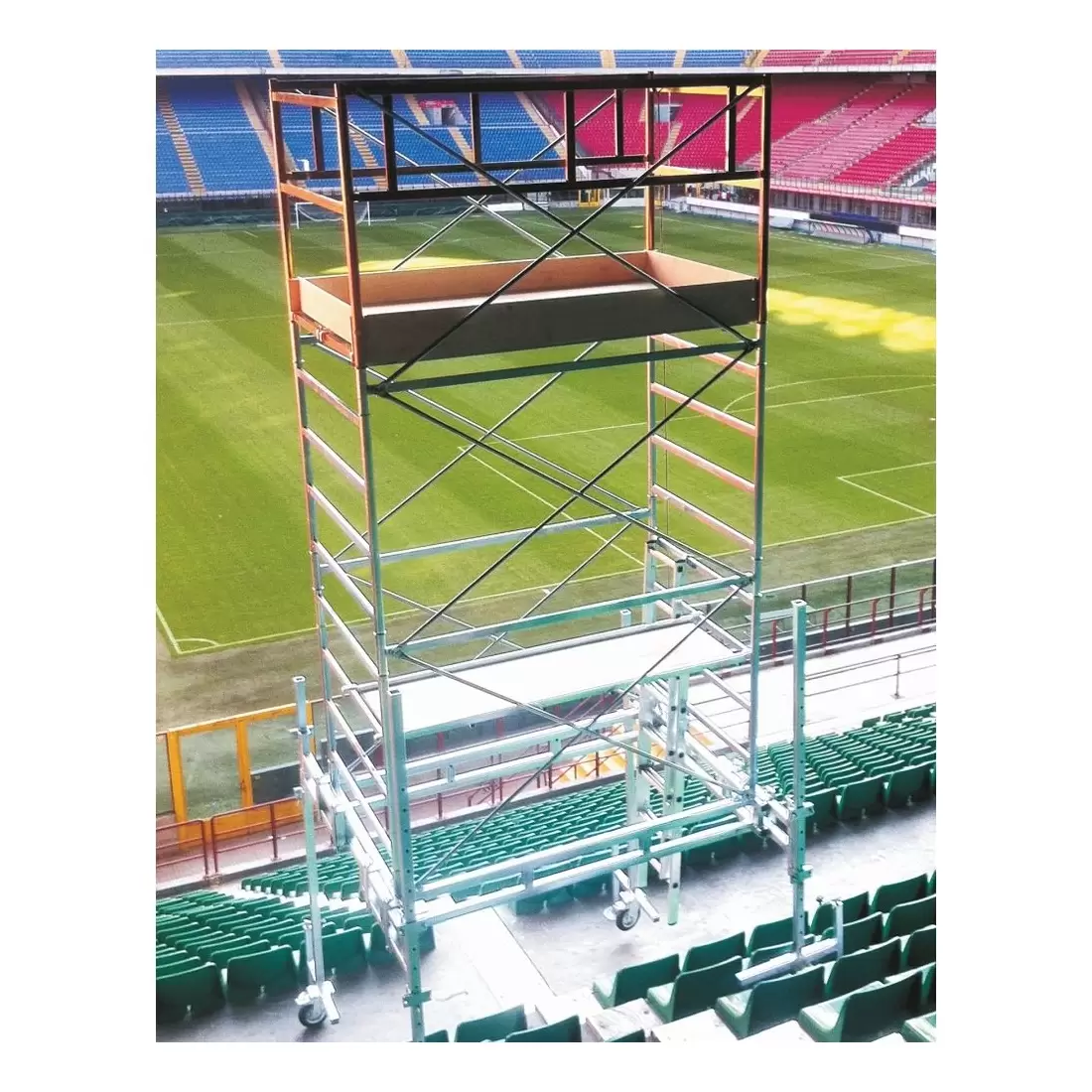 Configurazione accessoriata del trabattello EXPORT del quale conserva tutte le caratteristiche qualitative e funzionali. EXPORT HD aggiunge il numero minimo di piani di lavoro e parapetti intermedi richiesti dalla certificazione europea UNI EN 1004 per un uso non ancorato fino ad un’altezza di lavoro di mt. 13,40. Queste caratteristiche fanno dell’EXPORT HD un ponteggio estremamente sicuro e versatile, ne permettono l’adattamento ad ogni esigenza e ne motivano il largo utilizzo.