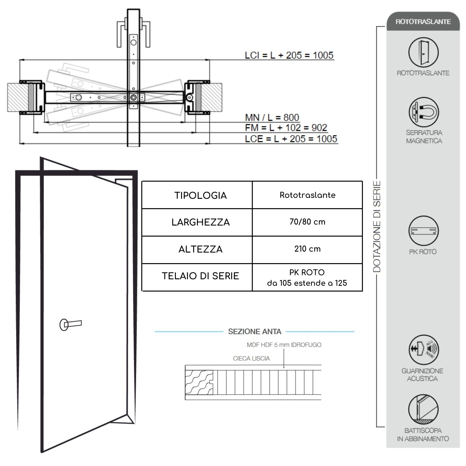 | MISURA PORTA | 70 x 210 cm, 80 x 210 cm |