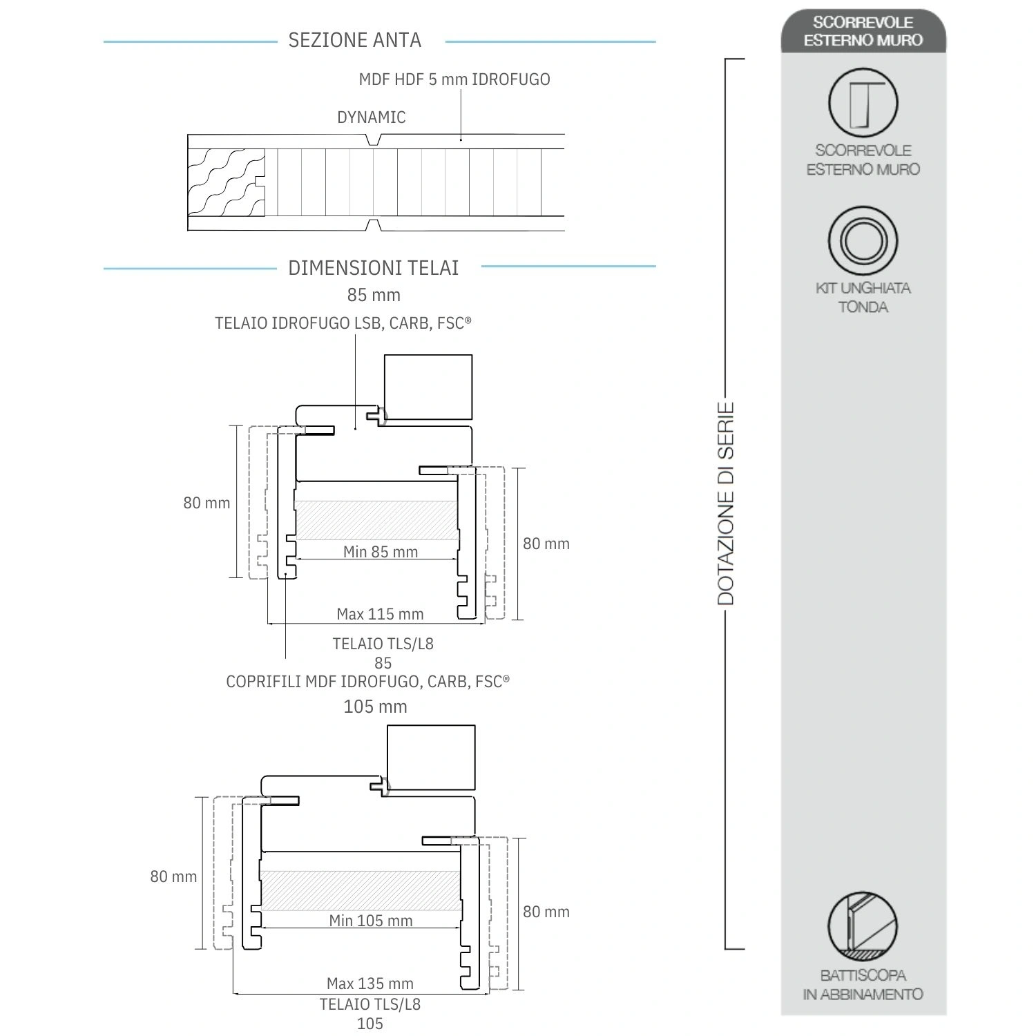 | MISURA PORTA | 60 x 210 cm, 70 x 210 cm, 80 x 210 cm, 90 x 210 cm |