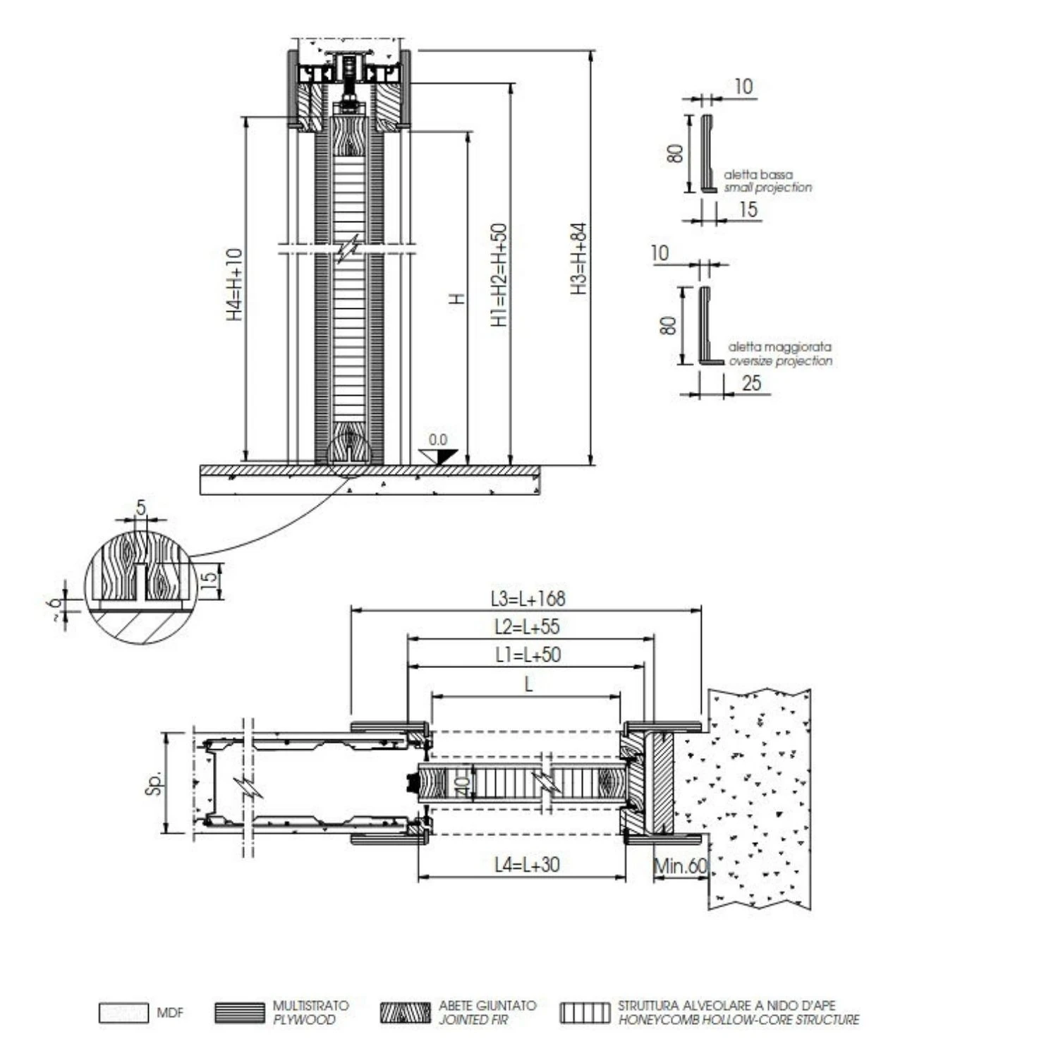 Altezza controtelaio: 210 cm