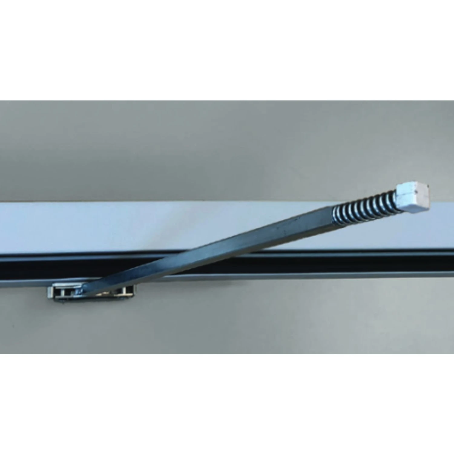 Regolatore di chiusura con graccio color argento con staffa fissaggio e viti. Per porte NINZ Proget