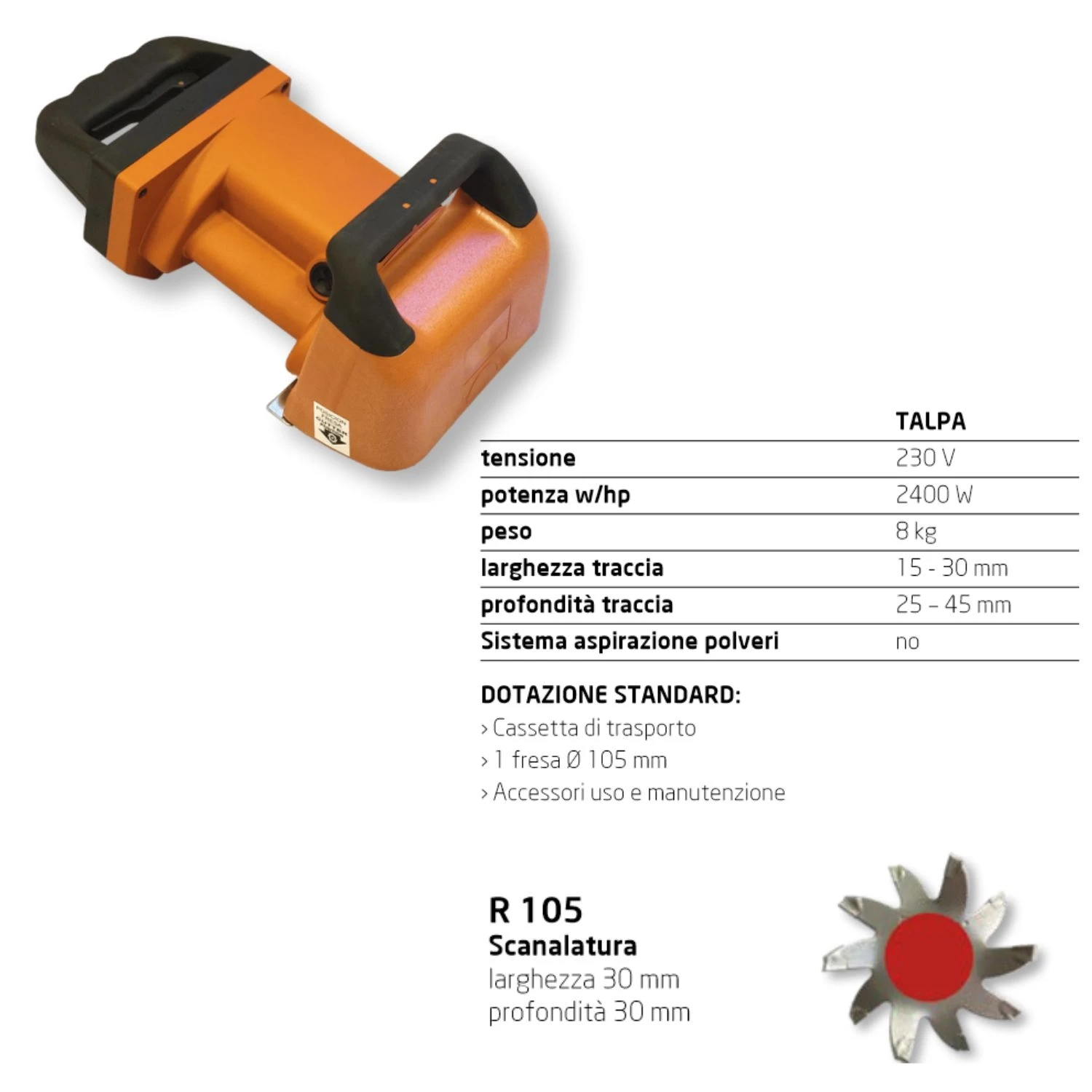 - 1 fresa Ø 105 mm larghezza 25 mm e profondità 35 mm