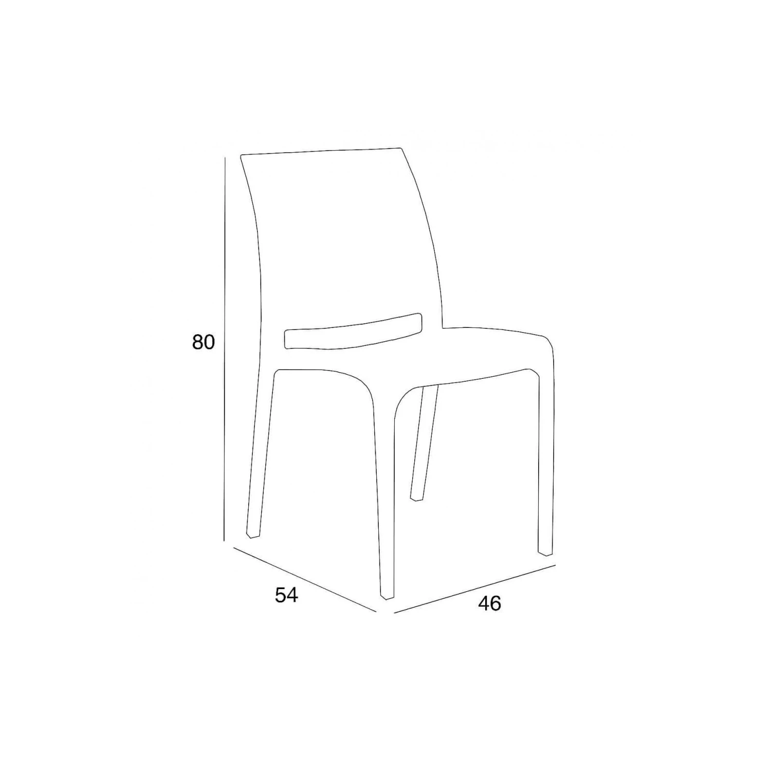Sedia impilabile in polipropilene e fibra di vetro con tappi antiscivolo. Dimensioni: cm 46 x 54 x 80 h. Colore: Verde
