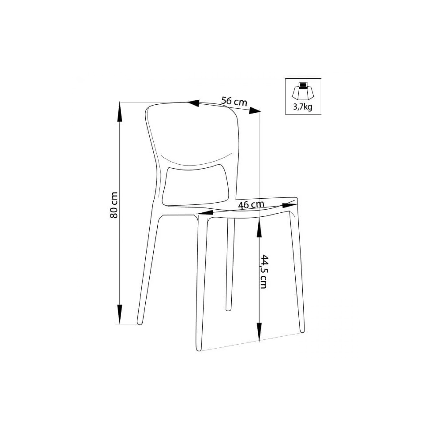 Sedia BIANCA in polipropilene adatta sia per l’interno che per l’esterno. Dimensioni: cm 56 x 46 x 80 h