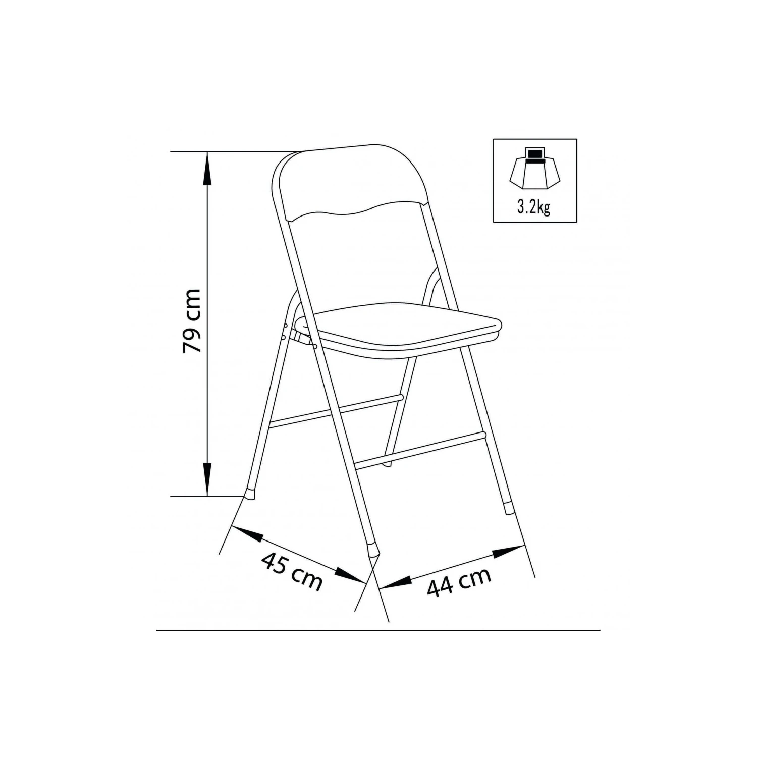 Sedia pieghevole con seduta imbottita in PVC, tubo verniciato GRIGIO: Ø19 x 0,8 mm Dimensioni: cm 44 x 45 x 79 h