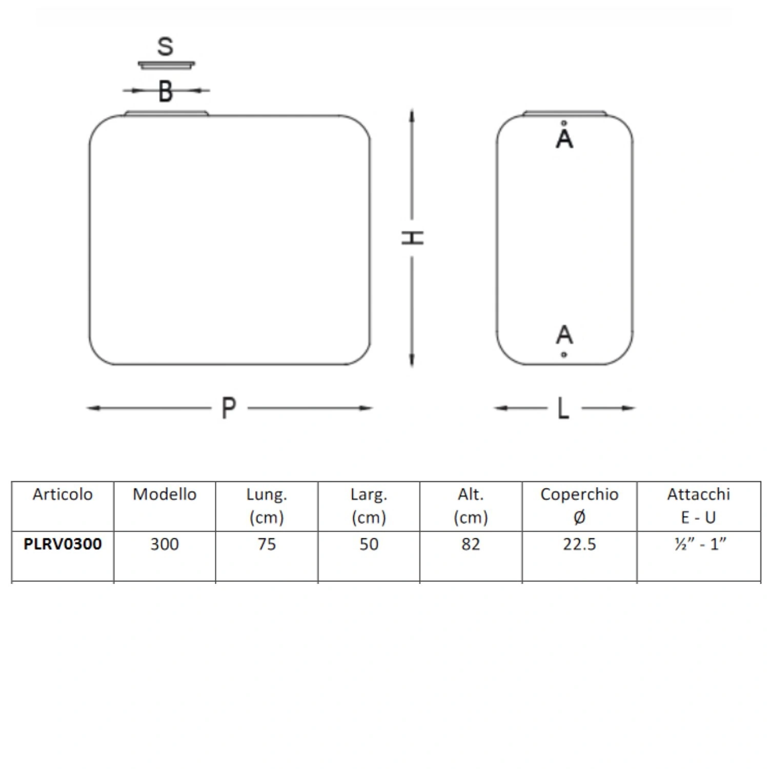 - Capacità: 300 litri