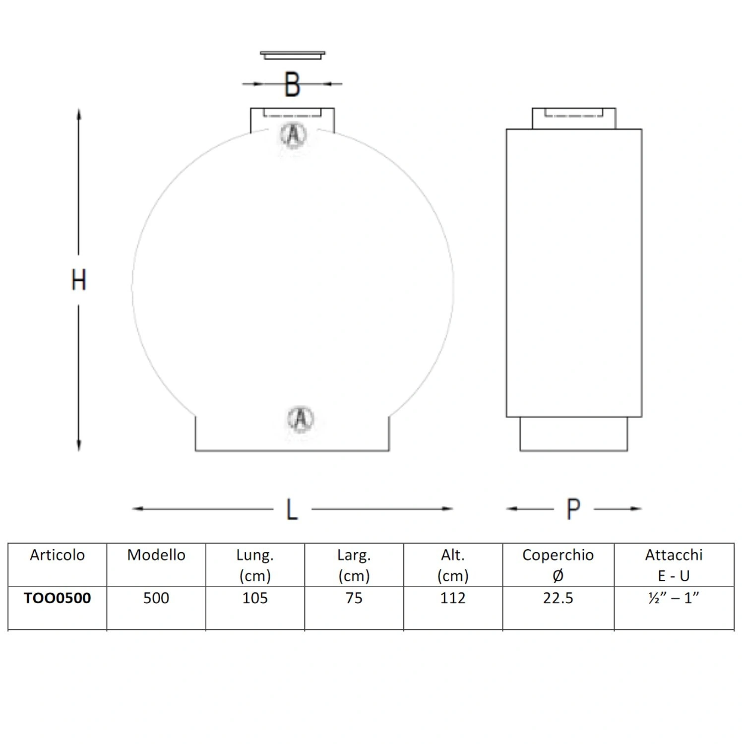 - Capacità: 500 litri